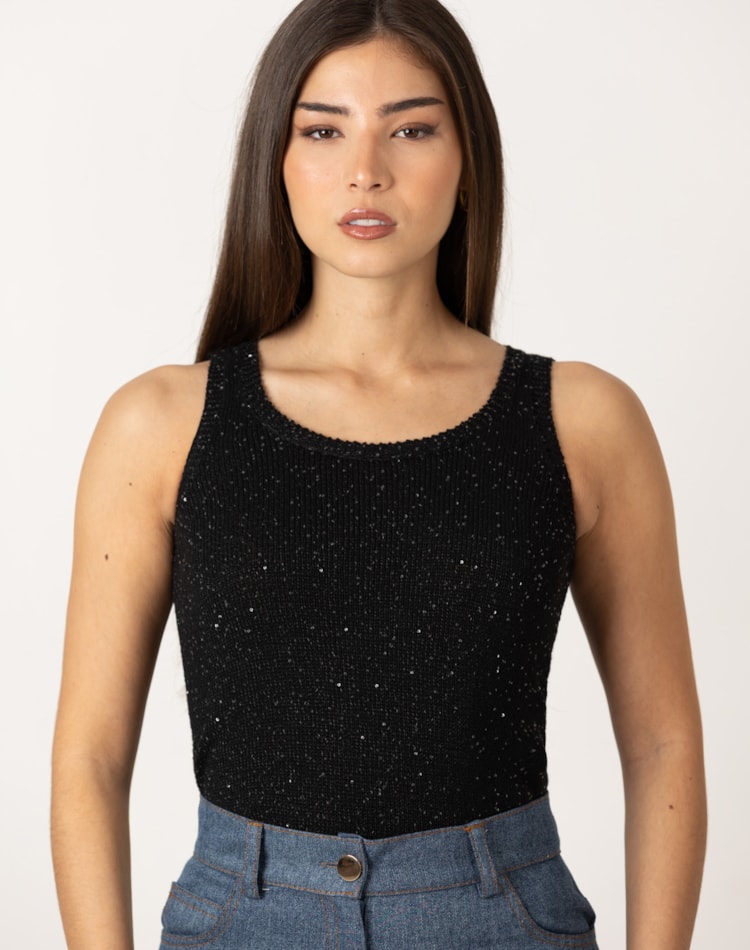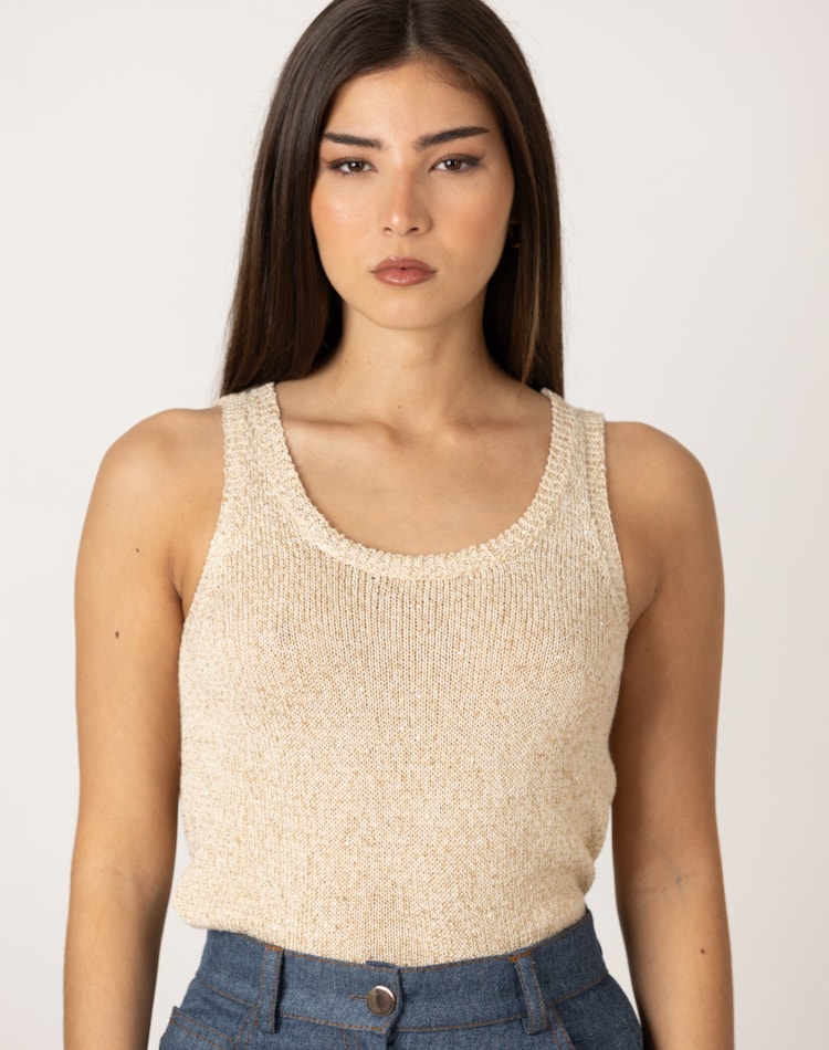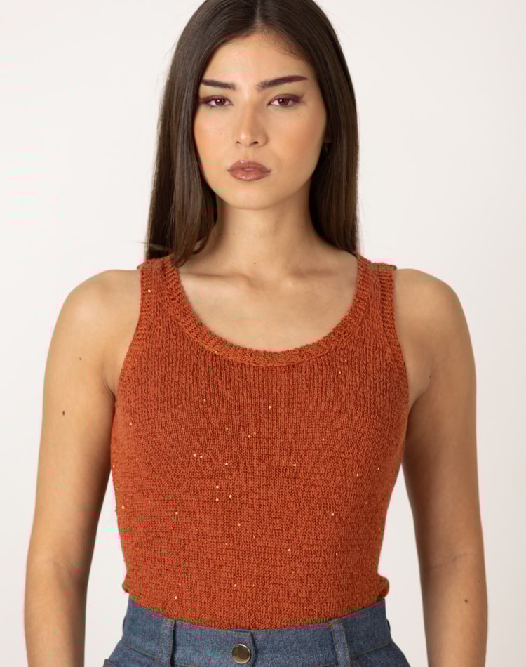 Top de malha com decote redondo e alças largas.