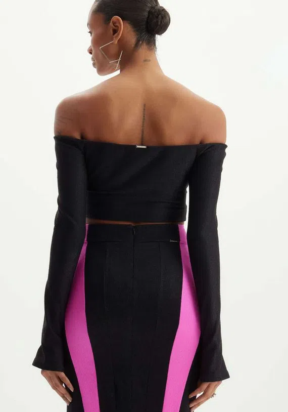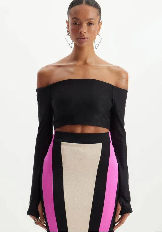 TOP CROPPED É PERFEITA PARA CRIAR LOOKS CHEIOS DE ESTILO. COM DECOTE OMBRO A OMBRO E MANGAS LONGAS, ELA POSSUI CAIMENTO COMFY, PERMITINDO USAR EM DIVERSOS MOMENTOS. UMA PEÇA INDISPENSÁVEL NO CLOSET E IDEAL PARA LOOKS ALL BLACK.