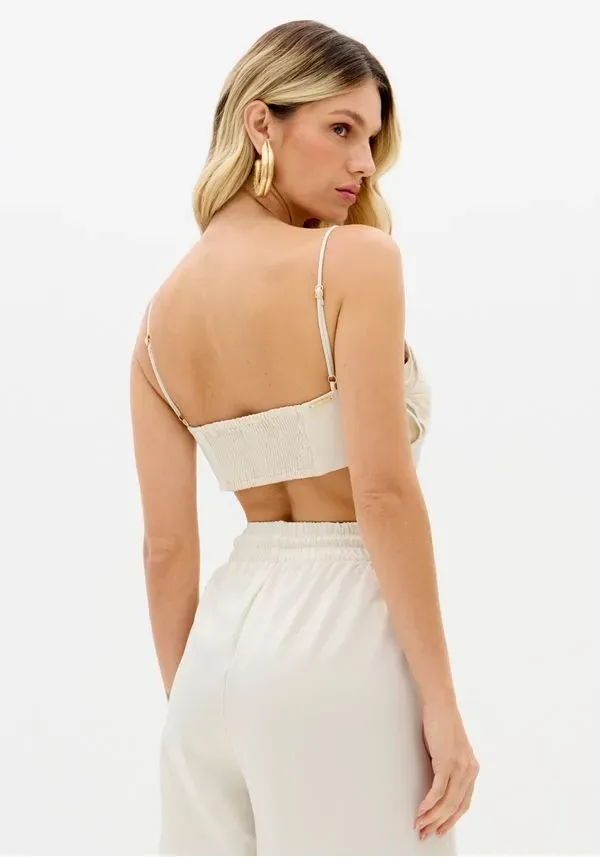 O top micro confeccionado em tecido plano traz alças finas reguláveis e elástico nas costas para um ajuste confortável. O destaque vai para o busto bordado com desenho orgânico e acabamento delicado, ideal para compor looks marcantes e festivos. Aposte!