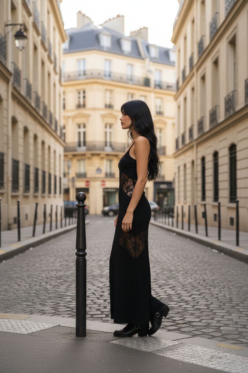 VESTIDO LONGO FLUIDO PRETO LANÇA PERFUME