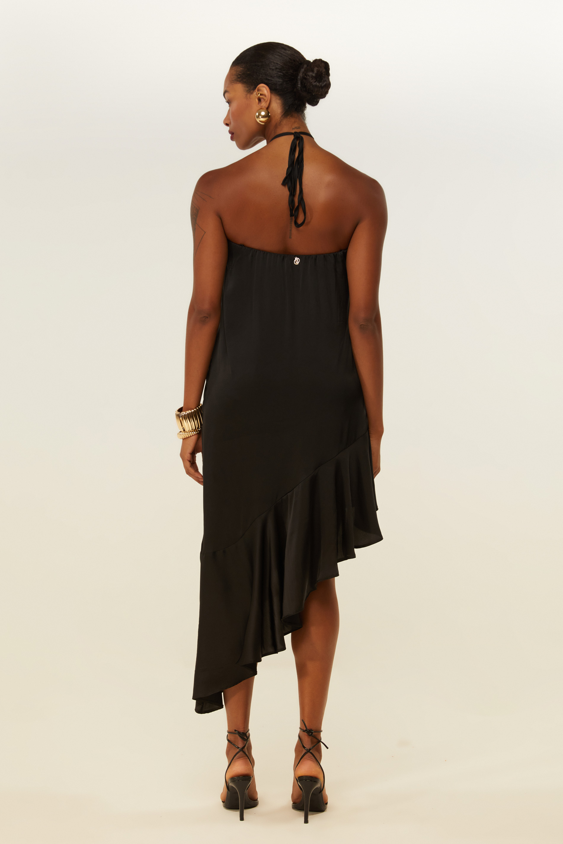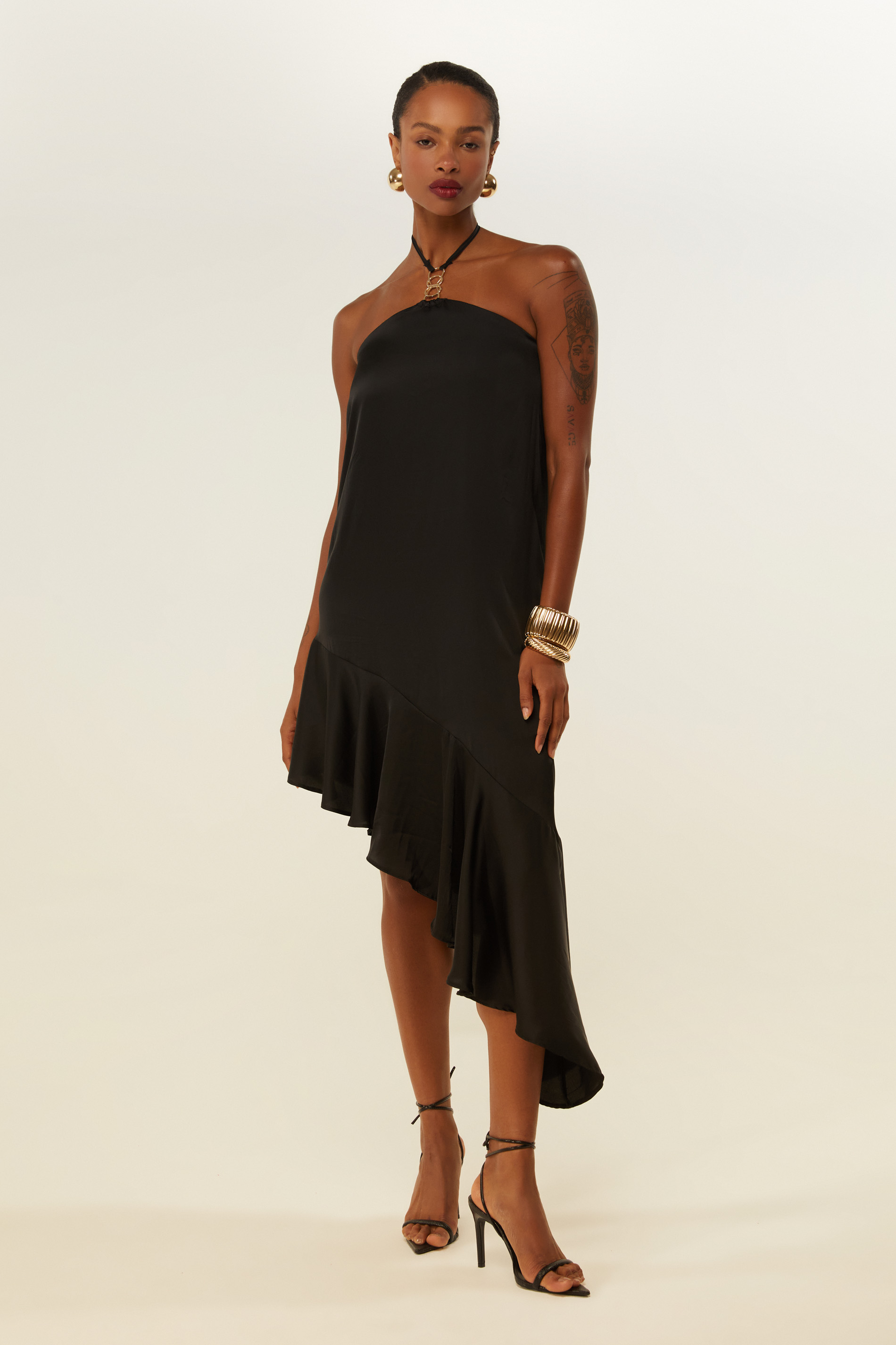 Conquiste olhares com o Vestido Assimétrico de Babados Dimy. Feito em tecido plano de poliéster e elastano, o modelo feminino possui detalhes em aviamento e caimento impecável. Ideal para ocasiões especiais, aposte no estilo e elegância da Dimy