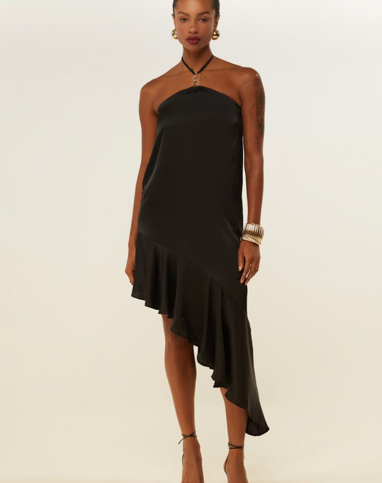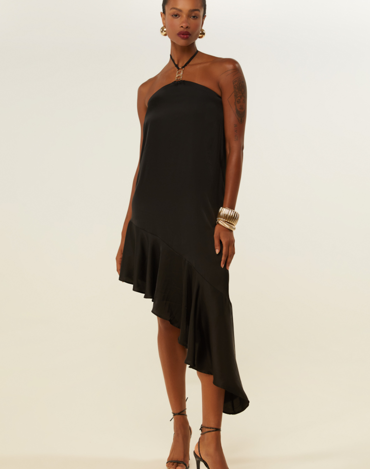Conquiste olhares com o Vestido Assimétrico de Babados Dimy. Feito em tecido plano de poliéster e elastano, o modelo feminino possui detalhes em aviamento e caimento impecável. Ideal para ocasiões especiais, aposte no estilo e elegância da Dimy