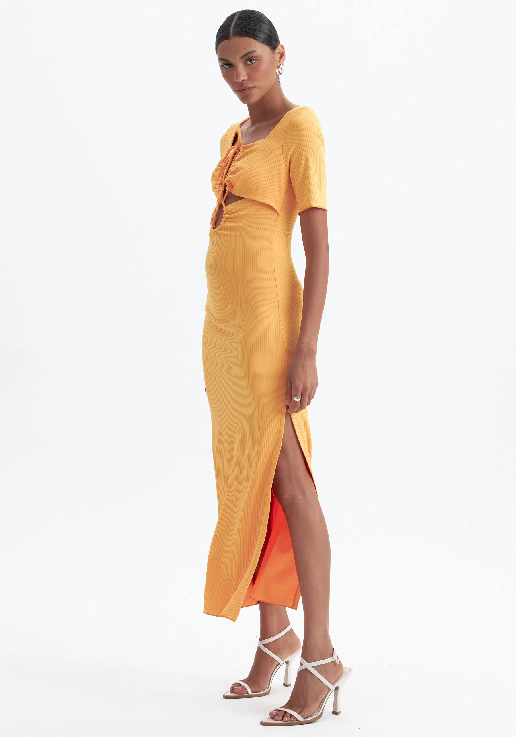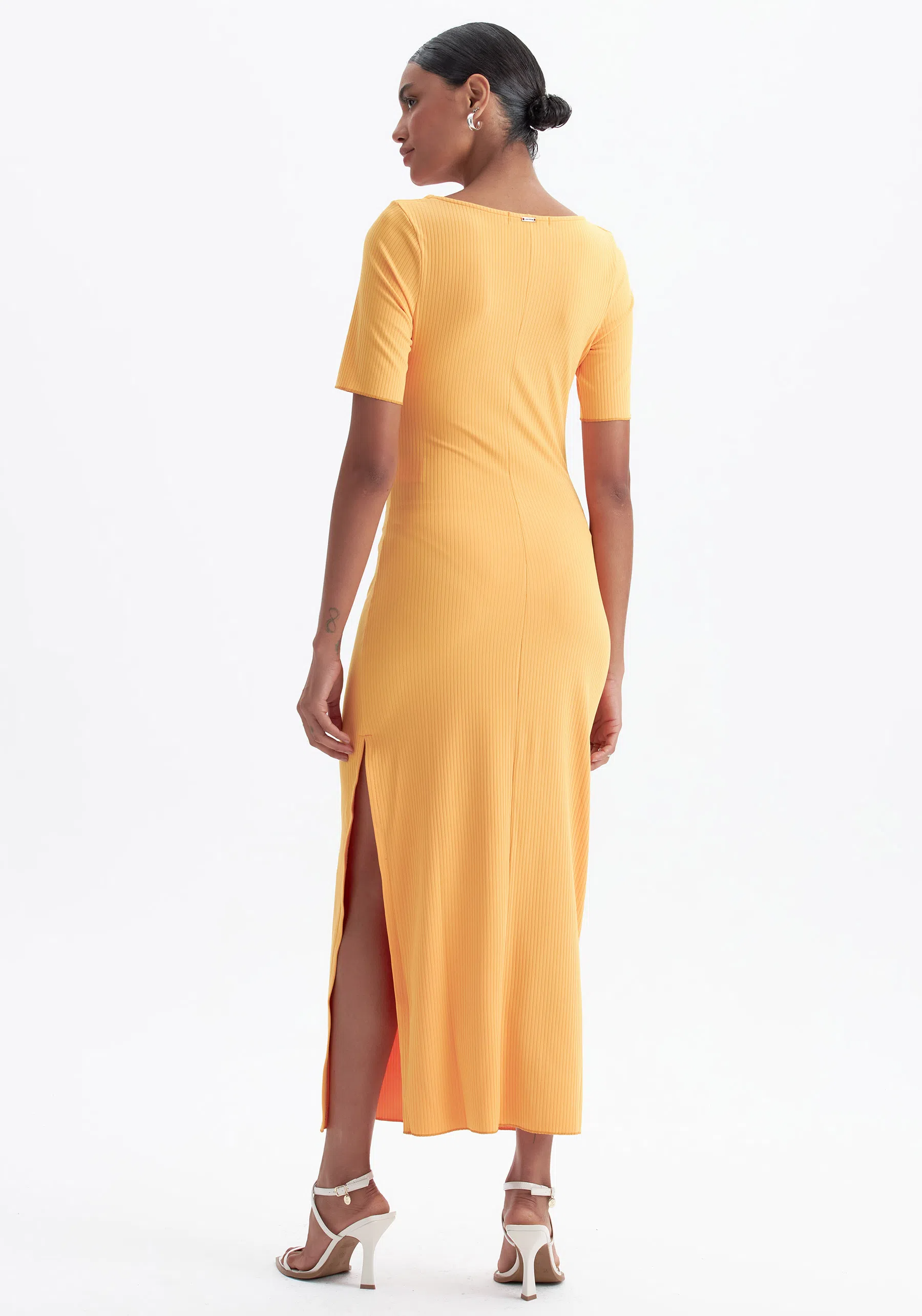 ESTIDO CANELADO LONGO COM FENDA NA LATERAL E RECORTES ESPECIAIS NO COLO SÃO CHEIOS DE PERSONALIDADE. A PEÇA AINDA APRESENTA CAIMENTO JUSTO QUE VALORIZA A SILHUETA. DE MANGAS CURTAS, O MODELO É PERFEITO PARA USAR EM DIVERSAS OCASIÕES. APROVEITE CADA MOMENTO COM MAIS ELEGÂNCIA.