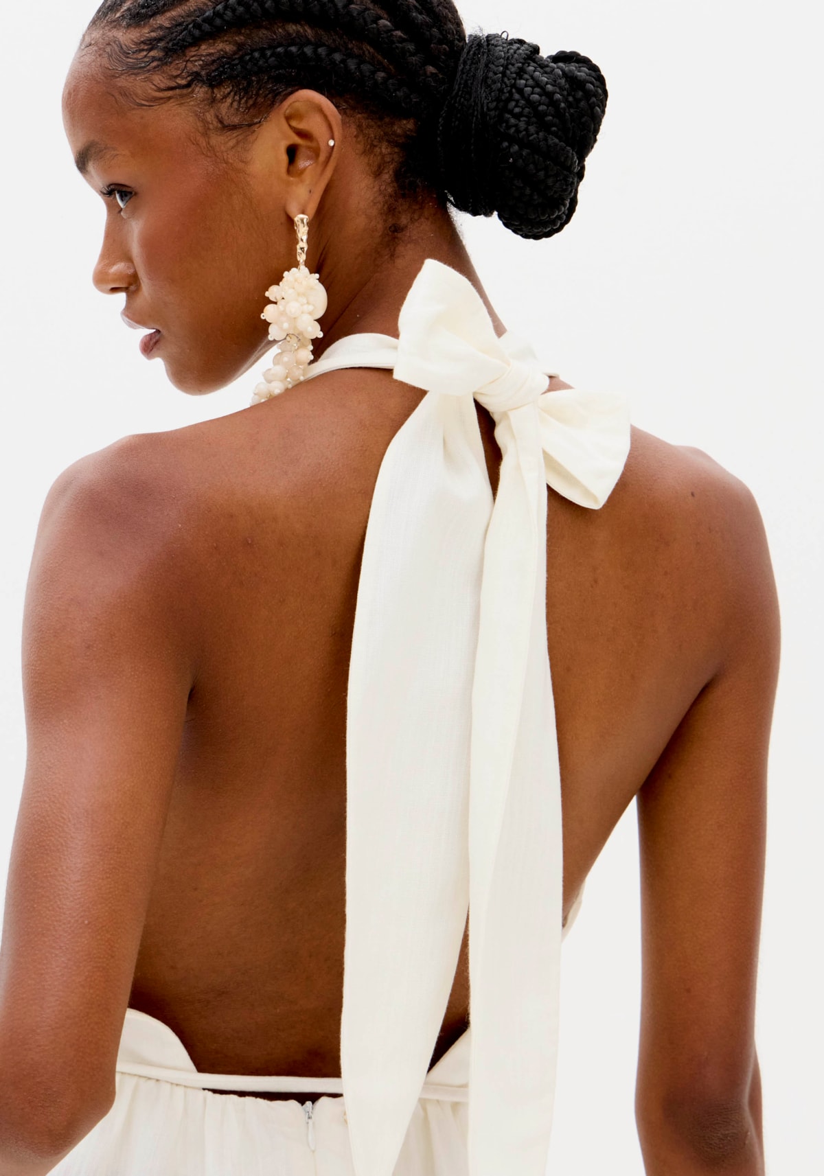 Feito em tecido encorpado com linho, o vestido super midi frente única possui amarração posterior, costas abertas e caimento solto. A barra assimétrica com recorte em tom diferenciado se destaca, trazendo um toque de tendência ao look. Acompanha cinto.