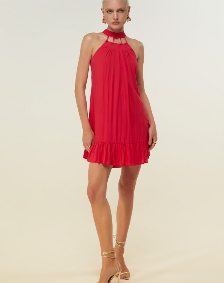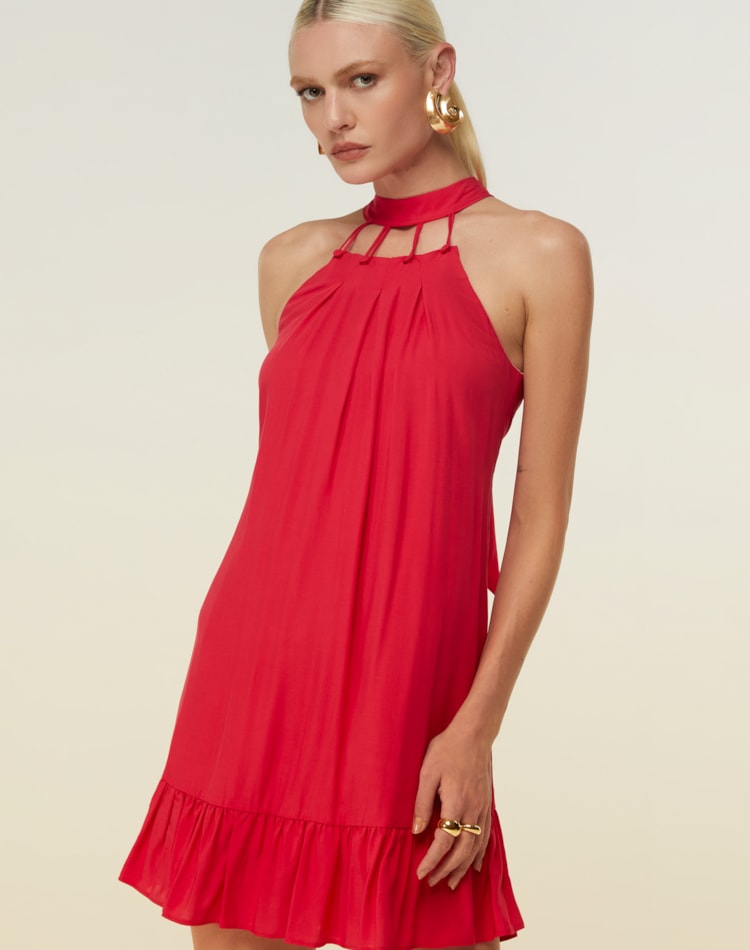 Vestido Curto Gola Alta da Dimy, você terá uma peça delicada e elegante para diversas ocasiões. Confeccionado, possui detalhes que garantem um visual moderno e sofisticado. Ideal para quem busca conforto e estilo em um só produto. Aproveite