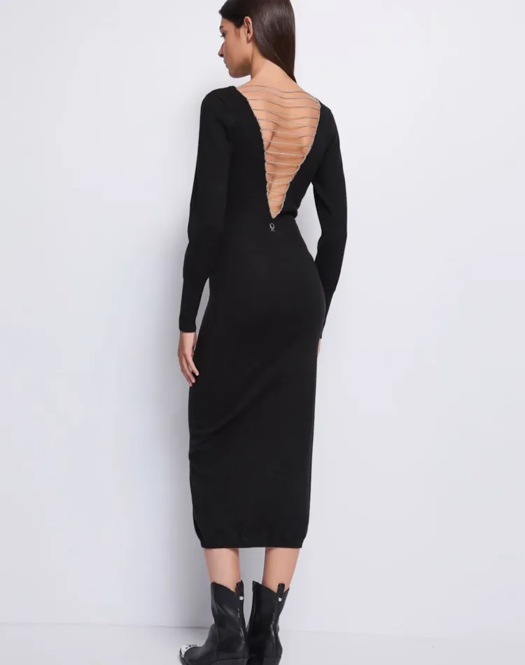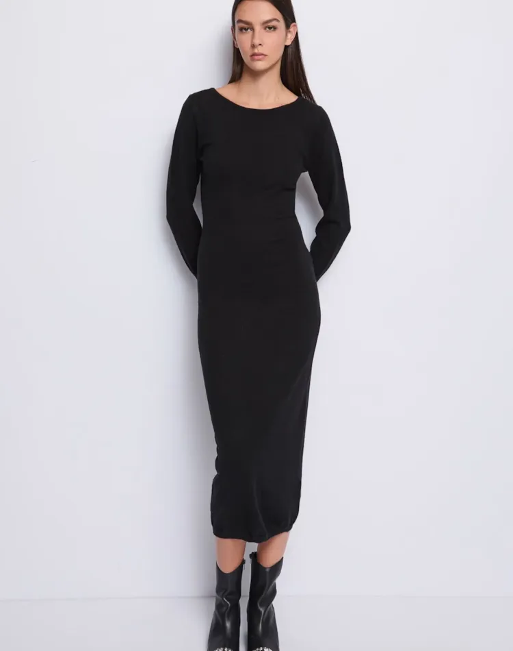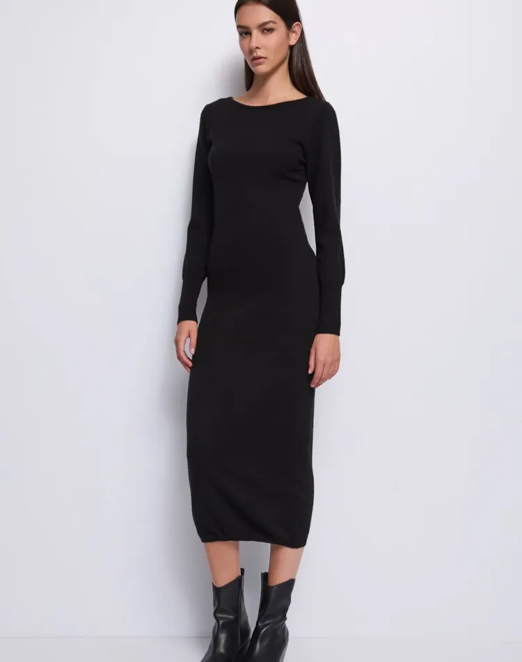 Vestido comprido de malha com mistura de lã