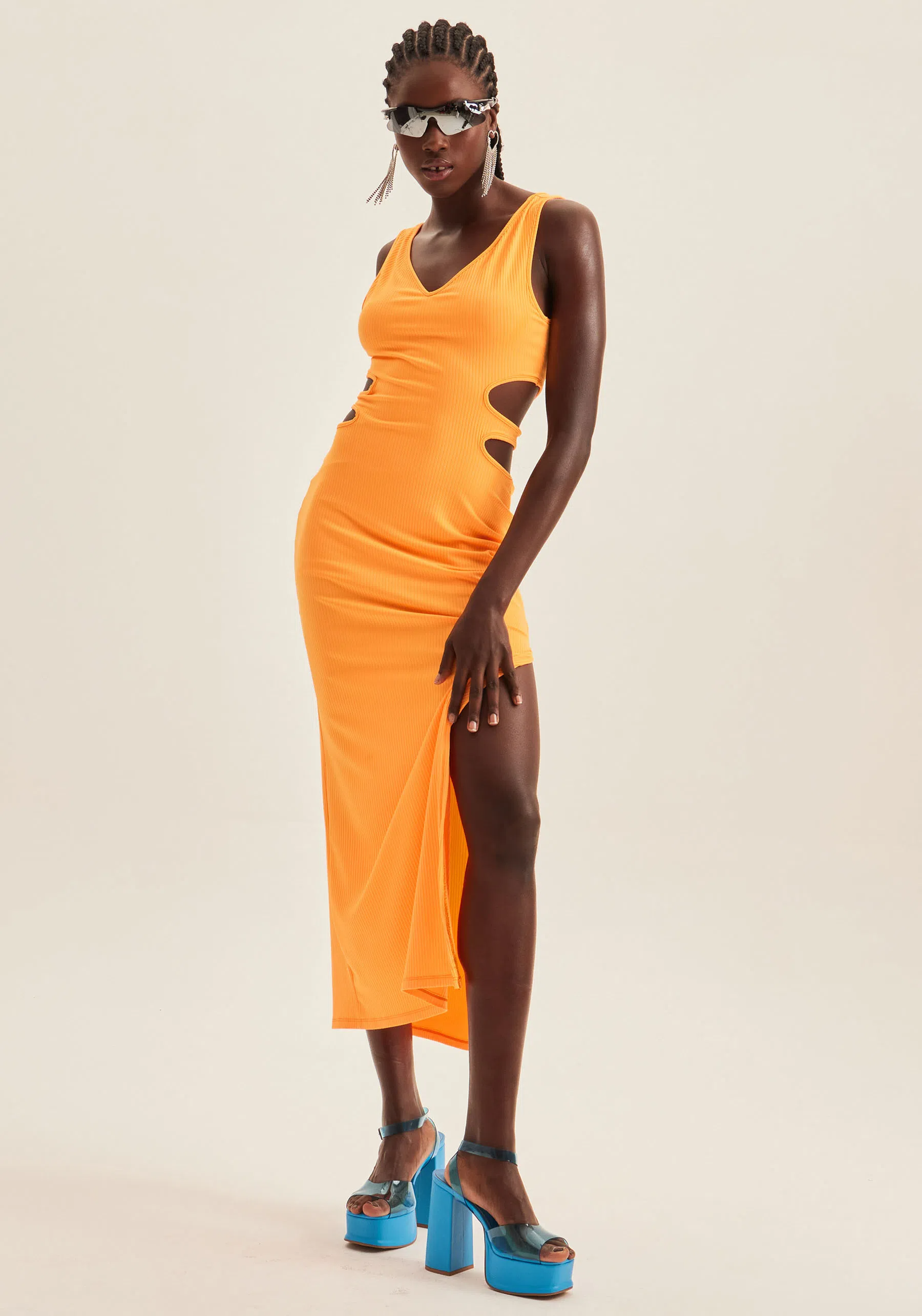 VESTIDO DE ALÇAS EM MODELAGEM SUPER MIDI APRESENTA TECIDO CANELADO E FENDA INCRÍVEL. É UMA PEÇA CONFORTÁVEL E DE SHAPE JUSTO, QUE VALORIZA A SILHUETA. OS DETALHES EM CUT OFF DESTACAM QUALQUER PRODUÇÃO OUTFIT calçoes