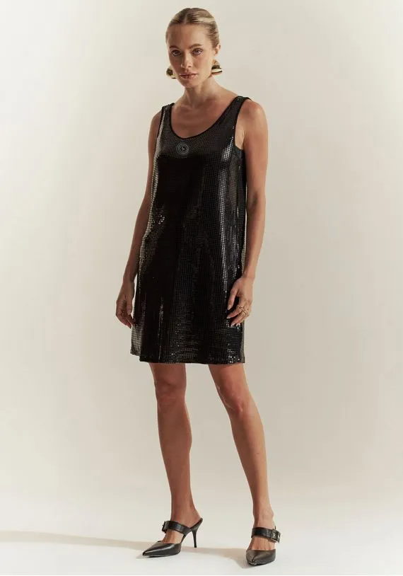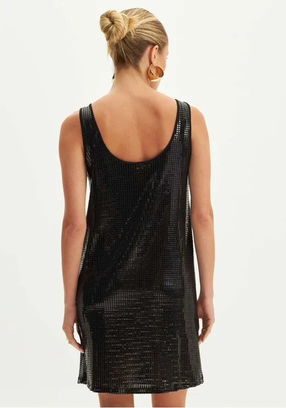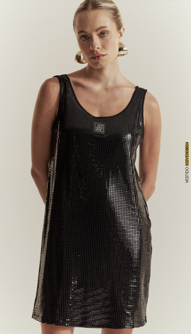 vestido curto possui caimento solto no corpo, alças e decote redondo. As aplicações dão um toque glow no look. Aposte na praticidade!