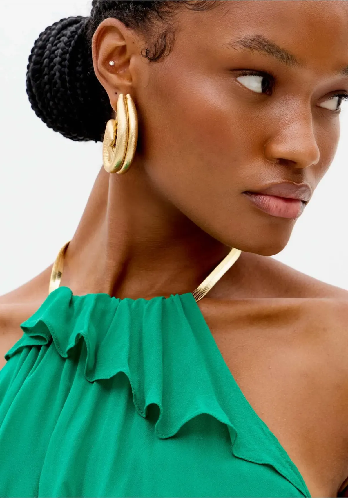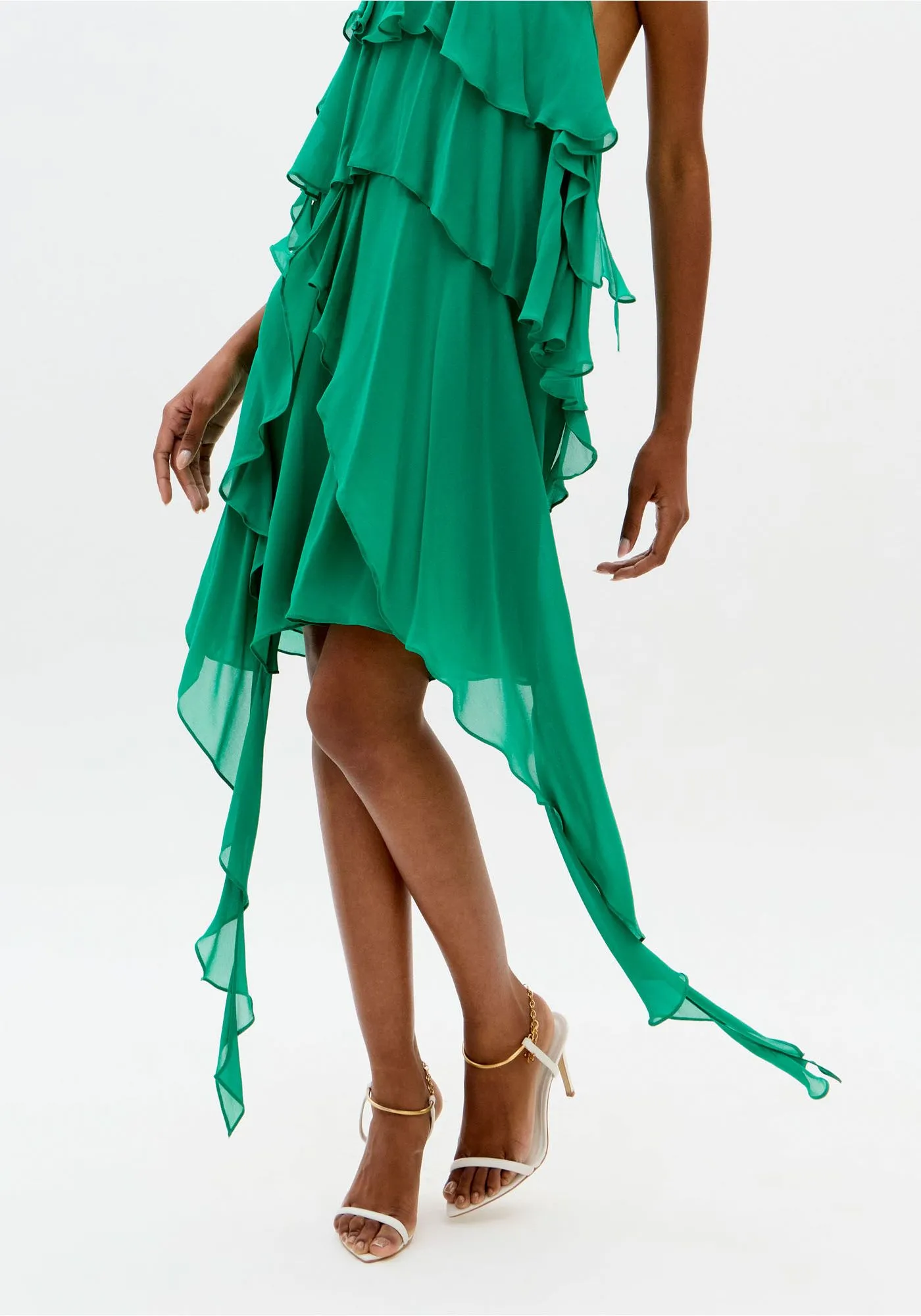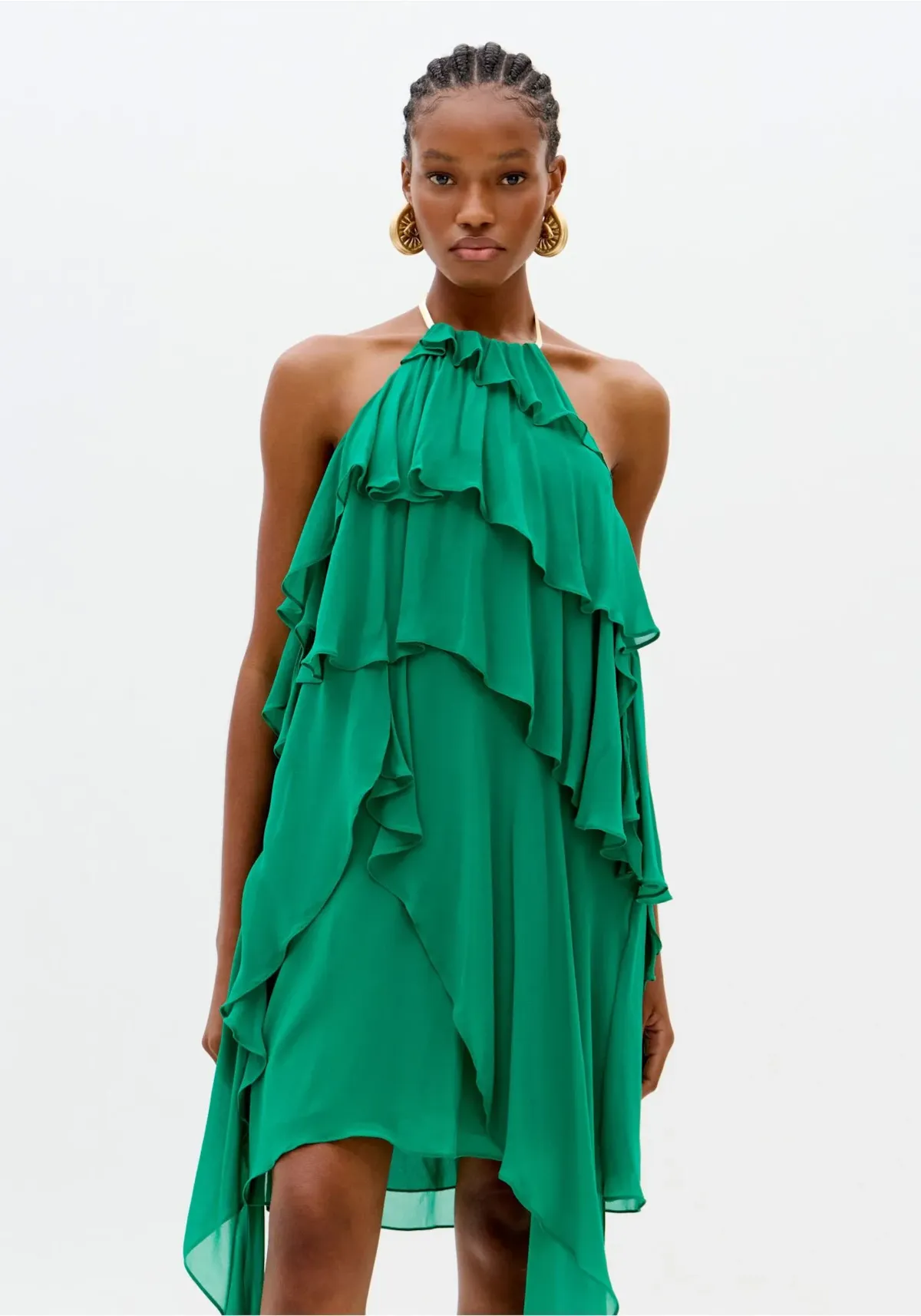 Feito em tecido leve e fluido com transparência sutil, o vestido curto de modelagem frente única traz fechamento em corrente no decote, adicionando elegância ao look. Seu caimento solto é valorizado por camadas que conferem movimento e leveza. Icônico!