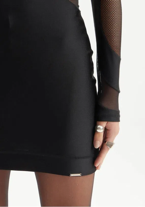 VESTIDO CURTO COM RECORTES ASSIMÉTRICOS É UMA PEÇA VERSÁTIL E CONFECCIONADA EM PU. TEM SHAPE JUSTO, VALORIZANDO AINDA MAIS A SILHUETA. AS MANGAS LONGAS E O DECOTE REDONDO ADICIONAM UM TOQUE DE ELEGÂNCIA, PERFEITO PARA USAR EM DIVERSAS OCASIÕES.