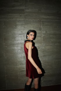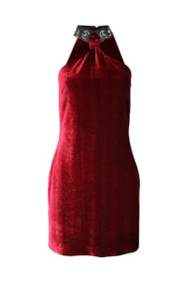 VESTIDO DE VELUDO COM APLICAÇÃO EM JOÍAS