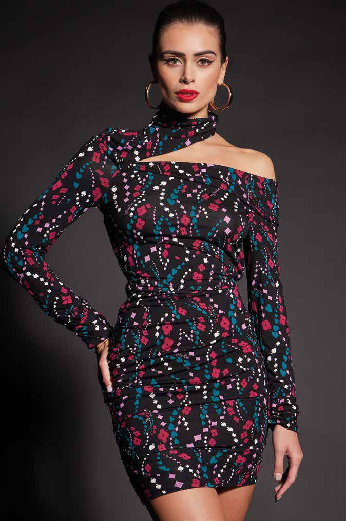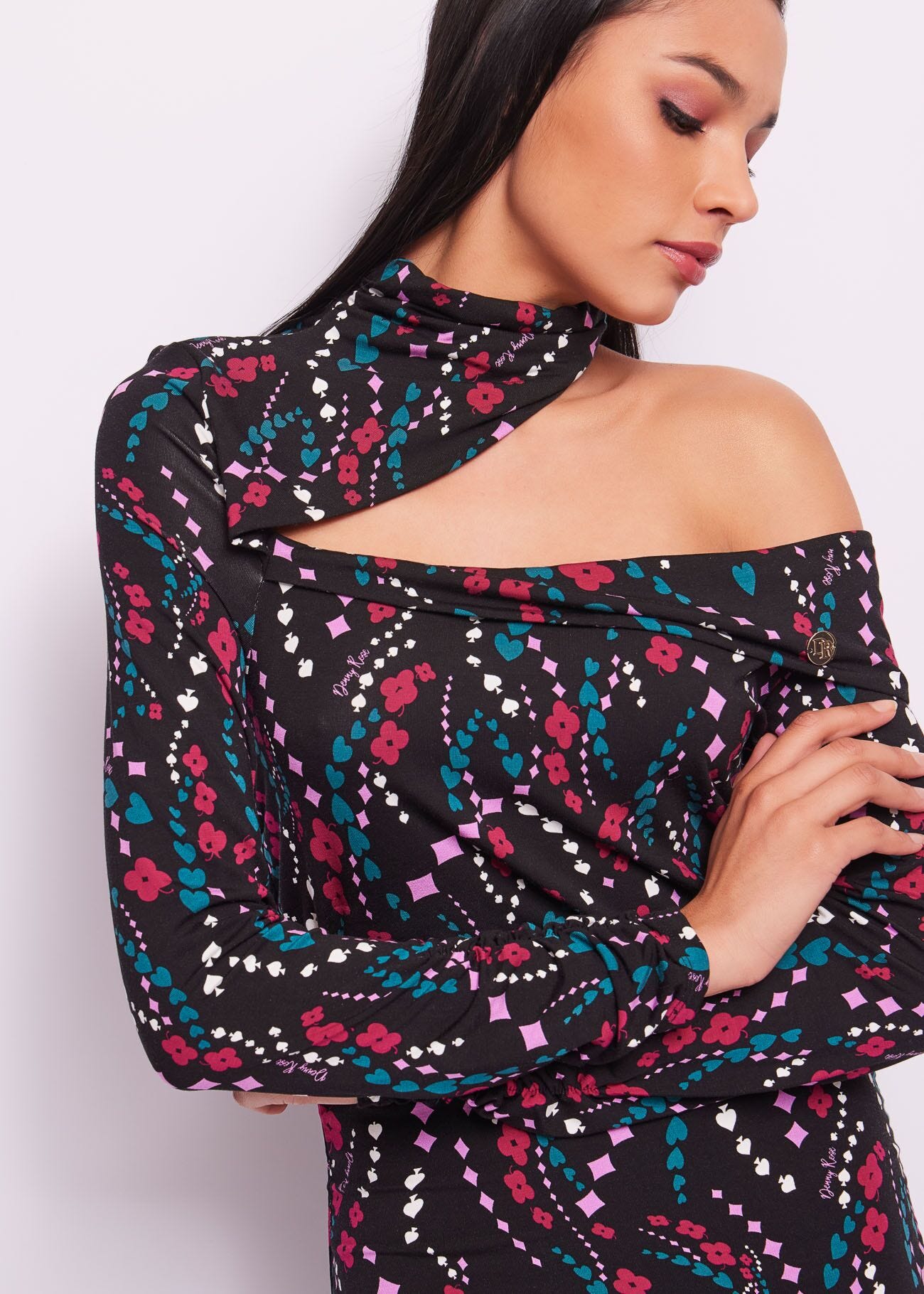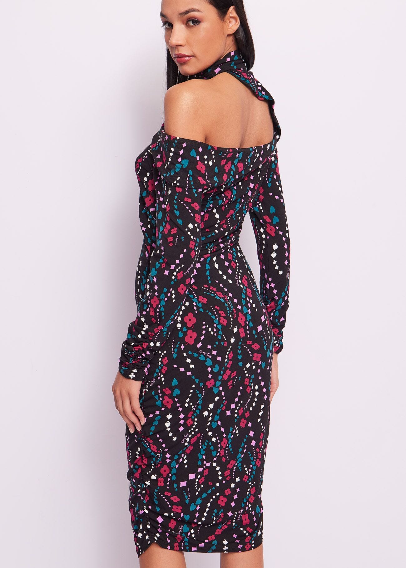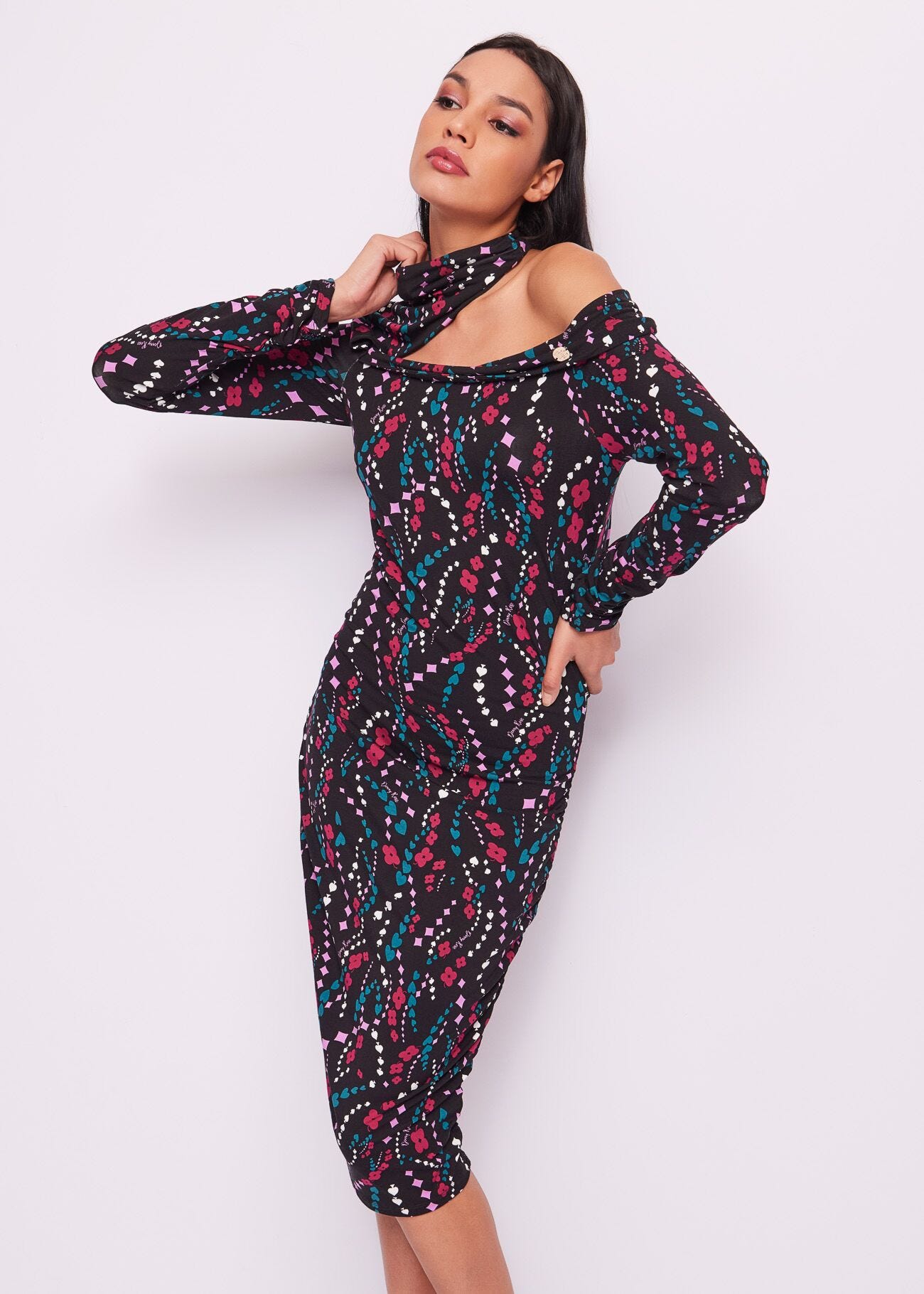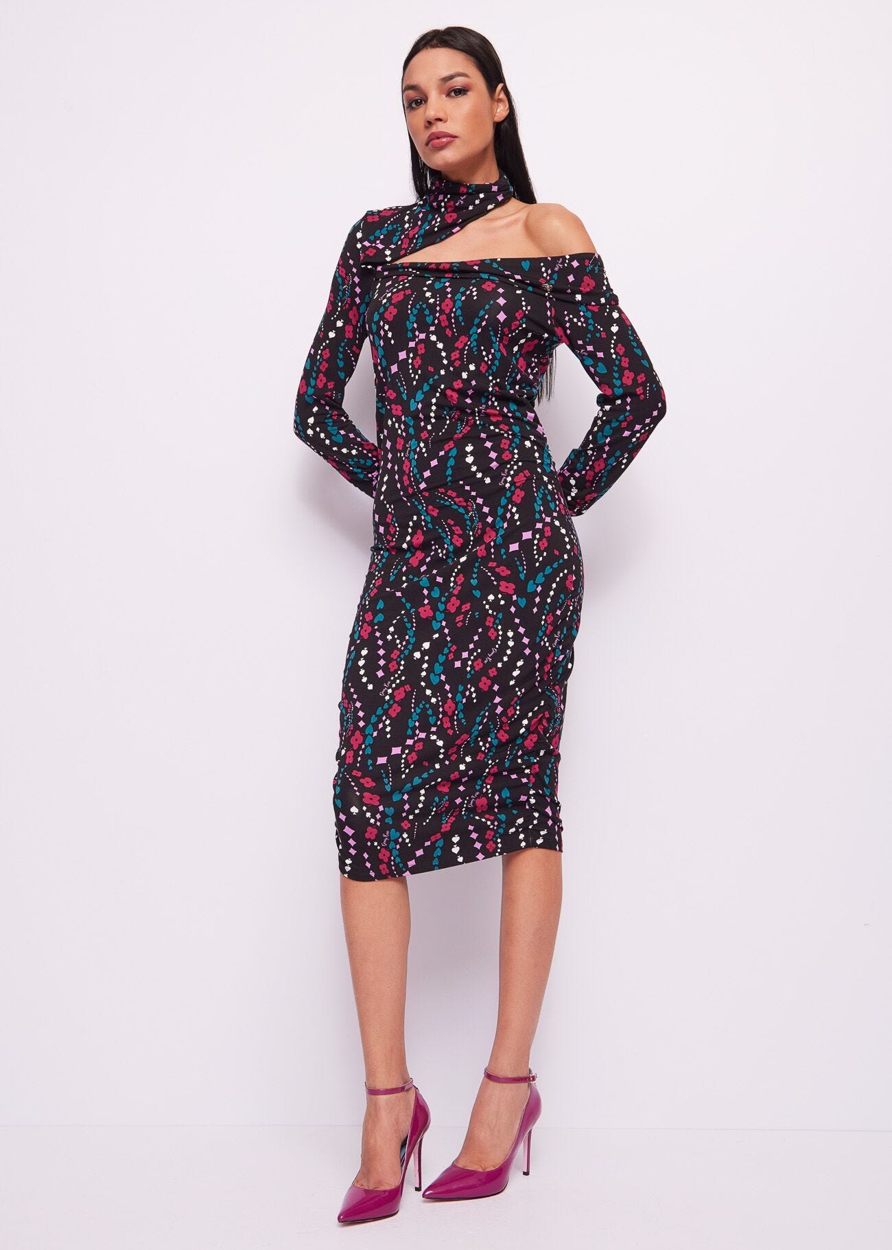 Vestido de punto de viscosa elástico Cuello alto Motivo troquelado Manga larga