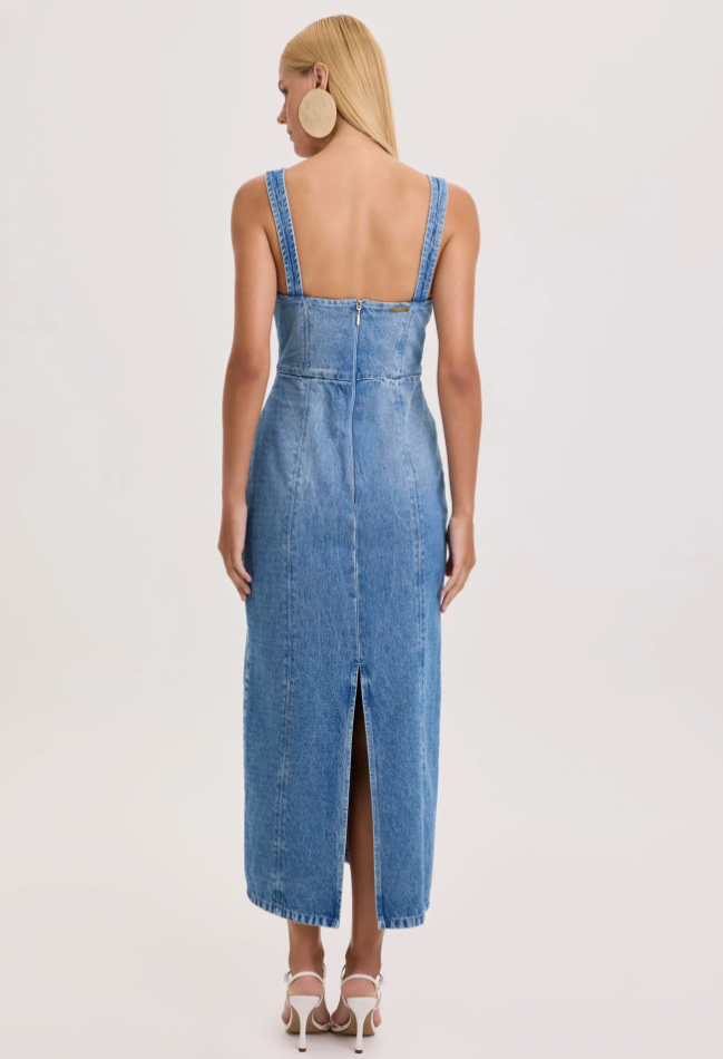 O vestido midi em jeans é a escolha perfeita para garantir uma produção autêntica e moderna. Com