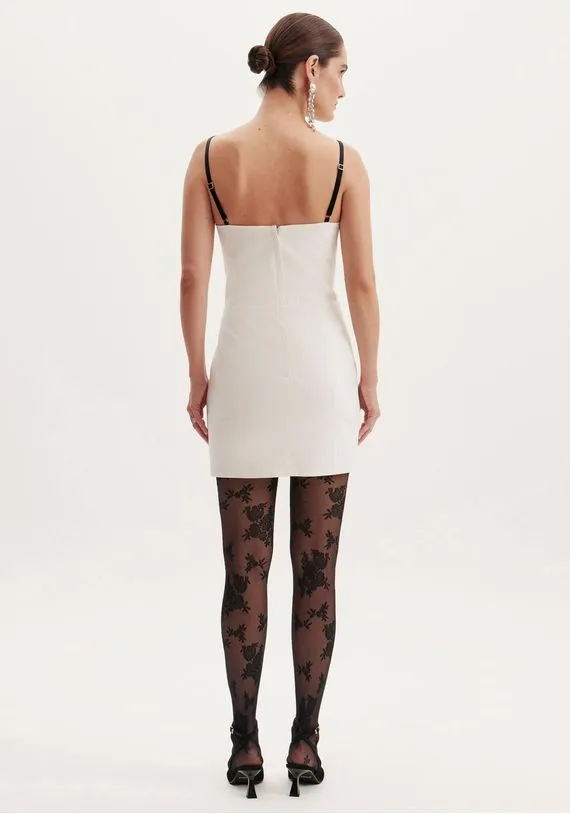 O vestido curto possui alças reguláveis, fechamento em zíper e shape estruturado. Os bordados no decote e barra criam um visual sofisticado. Aposte!