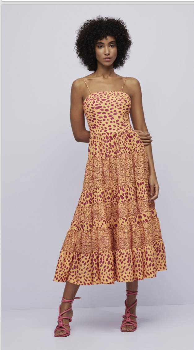 VESTIDO LARANJA ESTAMPA ONÇA