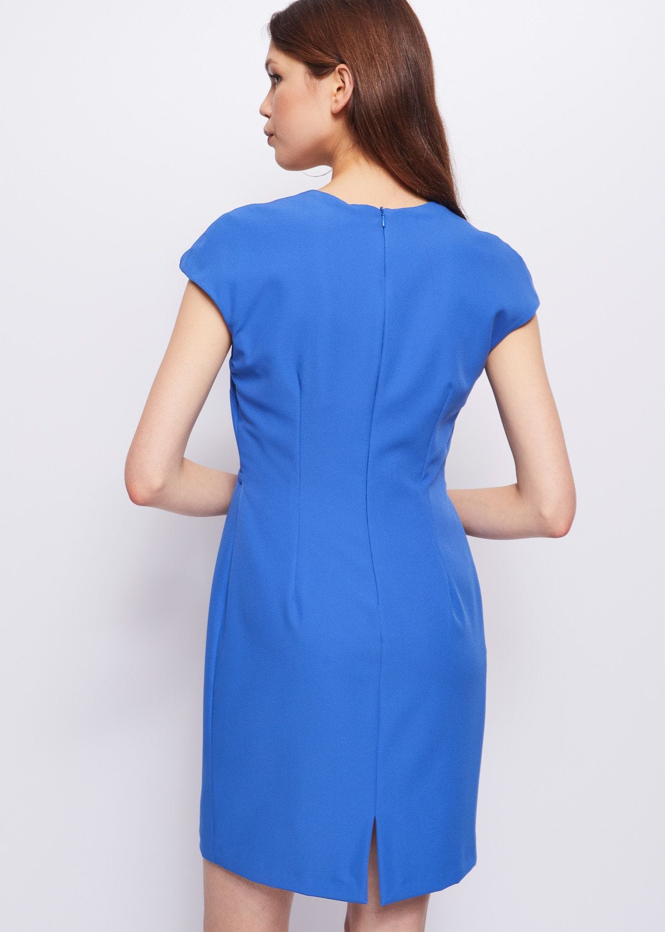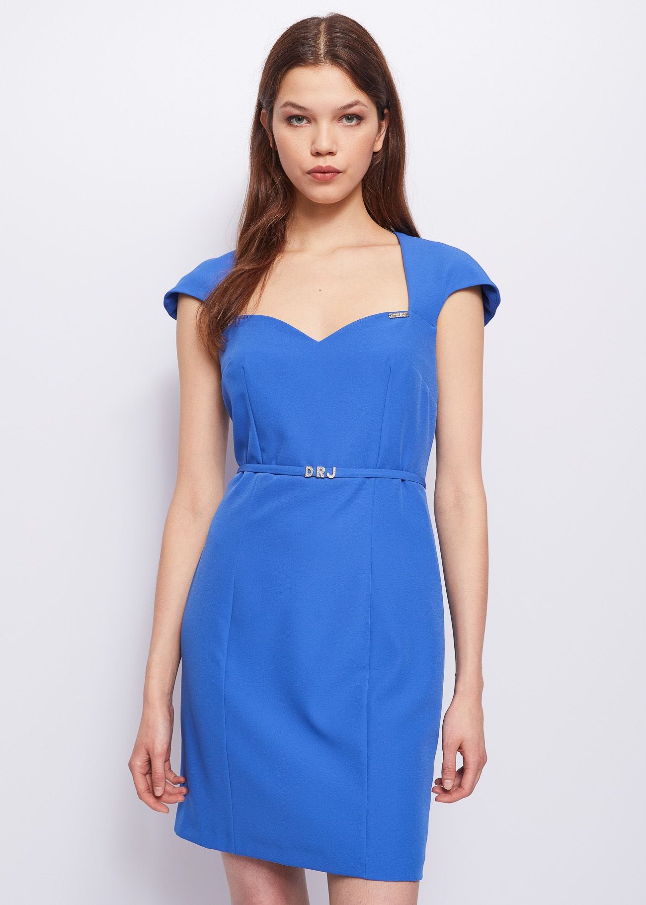 Vestido curto em tecido stretch bidirecional. Com decote coração, mangas embutidas, logo de metal no peito e fenda traseira. Fecho de correr oculto nas costas. Cinto com lettering DRJ finalizado com strass. Forrado.