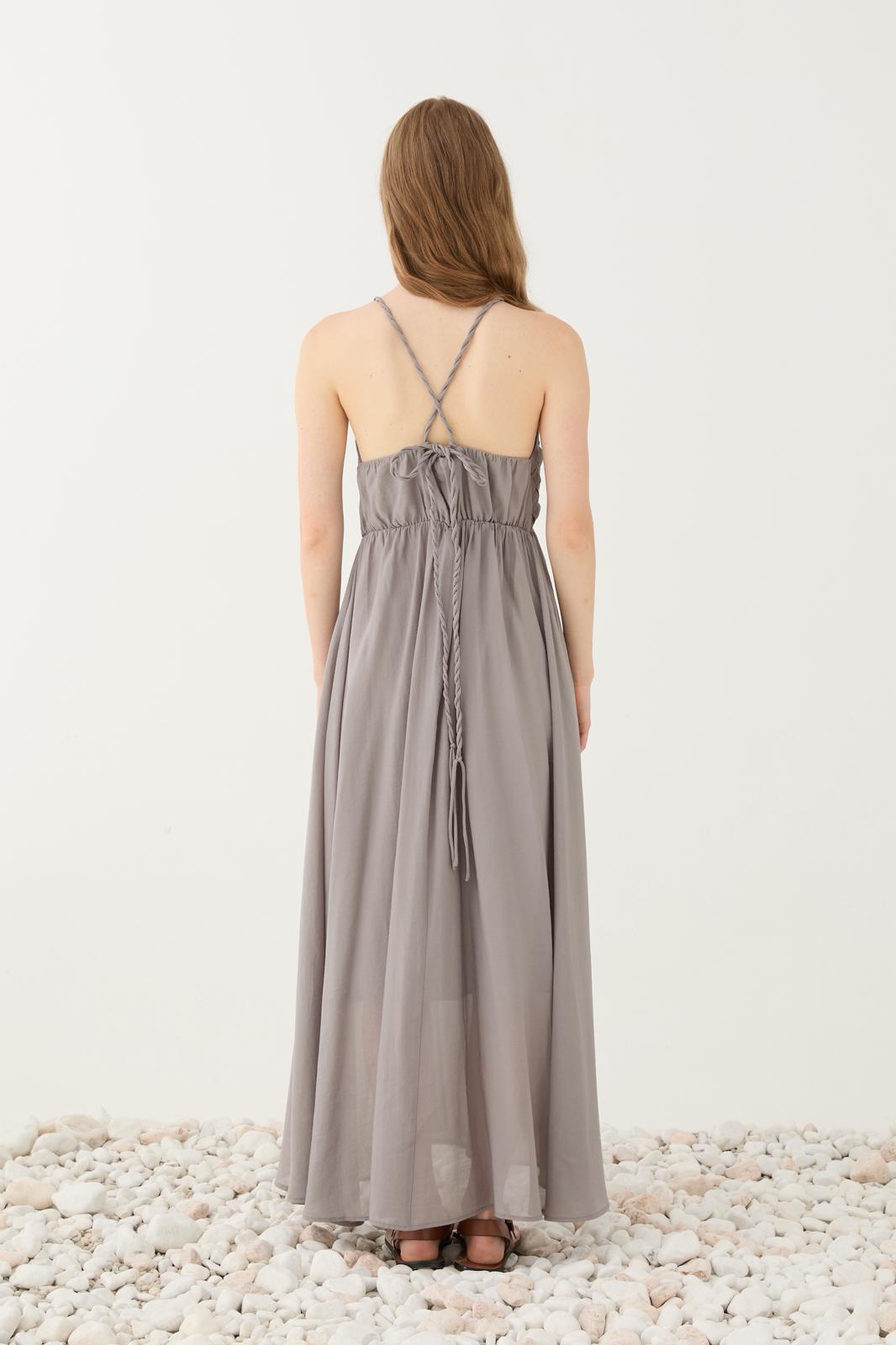 VESTIDO LINHO PRETO COSTAS ABERTAS LANÇA PERFUME