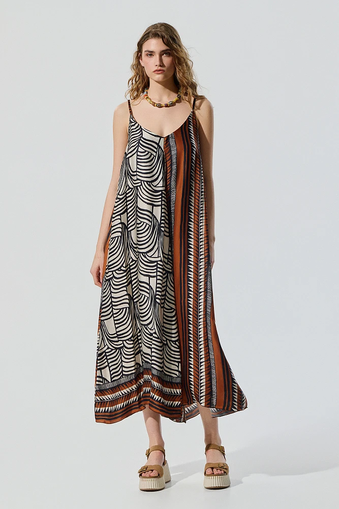 Vestido maxi com detalhes em contraste BSB