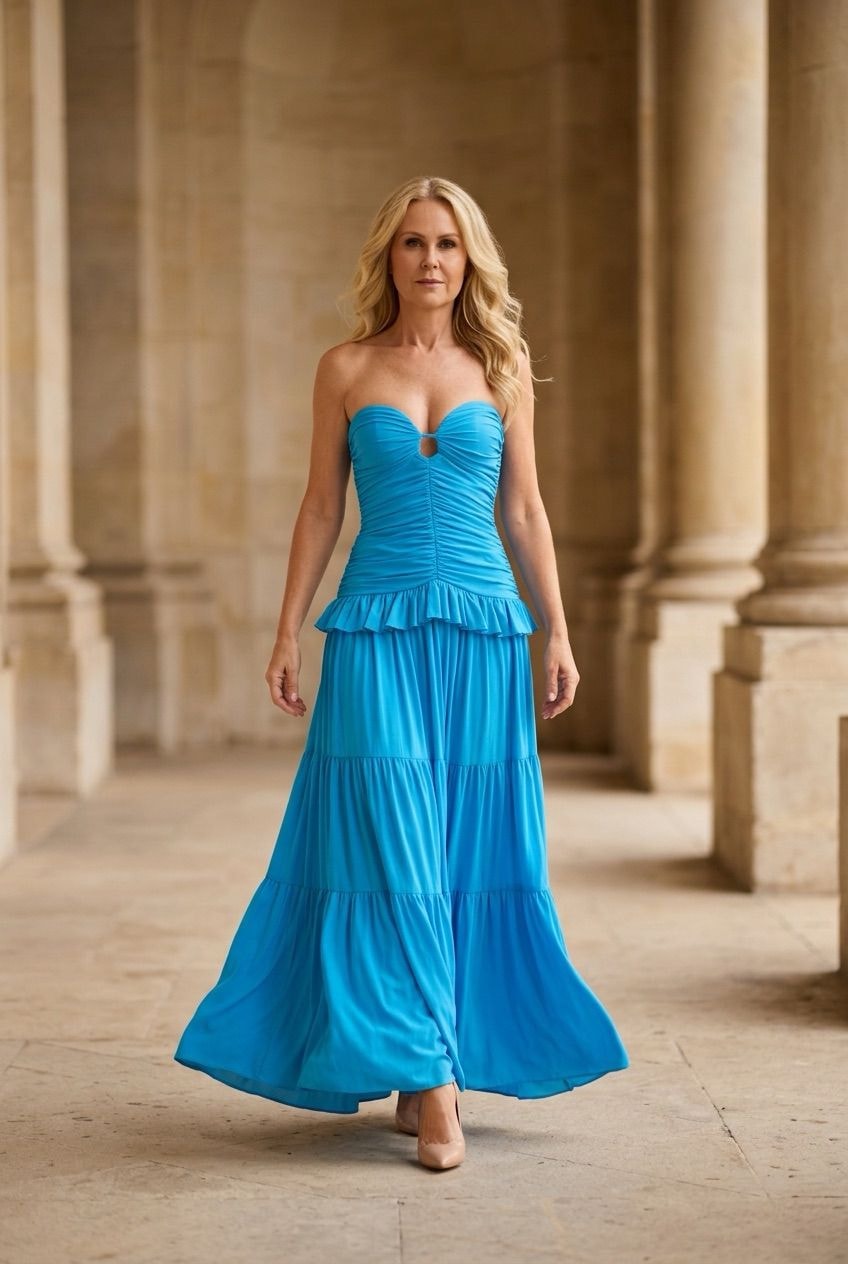 O vestido longo é feito em malha leve com modelagem franzida e caimento justo ao corpo. Possui busto estruturado com bojo, recorte no decote, zíper posterior e saia fluida. O babado pontual confere charme extra à versão. Escolha certa em dias especiais!