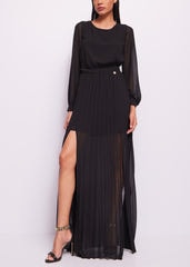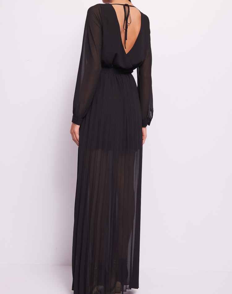 VESTIDO LONGO PLISSADO PRETO