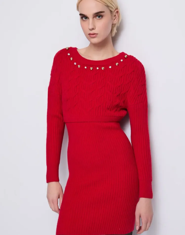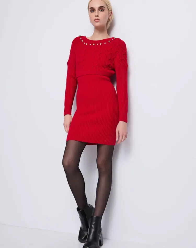 Vestido curto em malha de lã mista