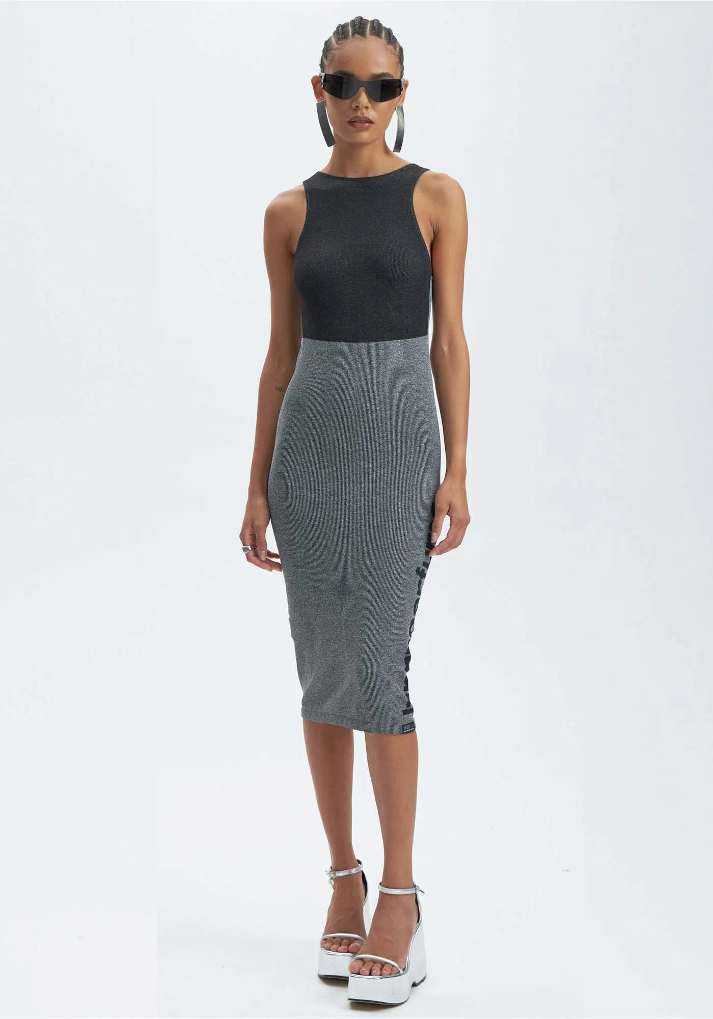 VESTIDO MID CINZA E PRETO CAVAS