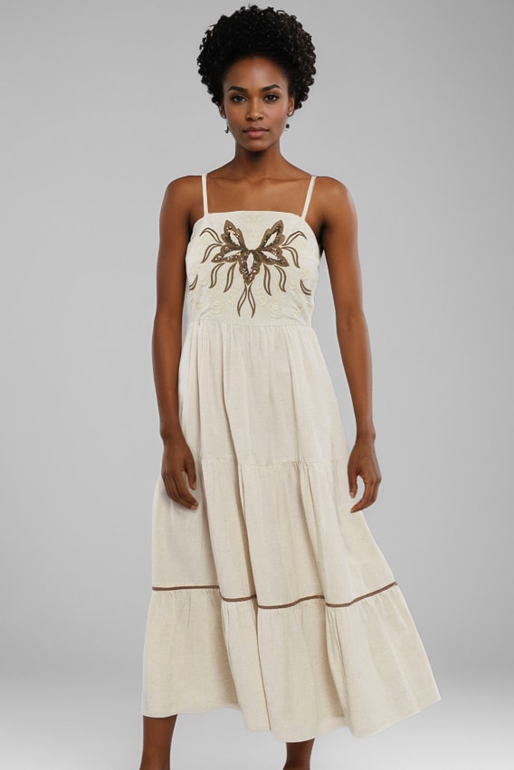Vestido Super Midi De Alças Com Babados LANÇA PERFUME