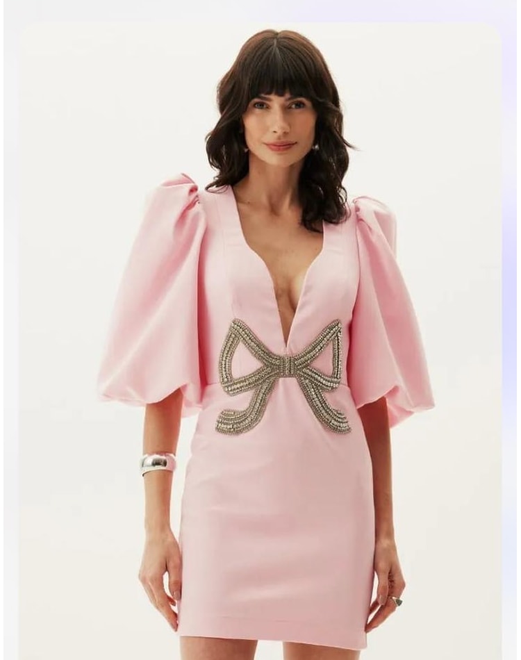 Vestido com manga balão e laço brilhantes