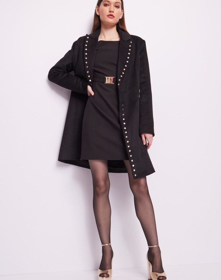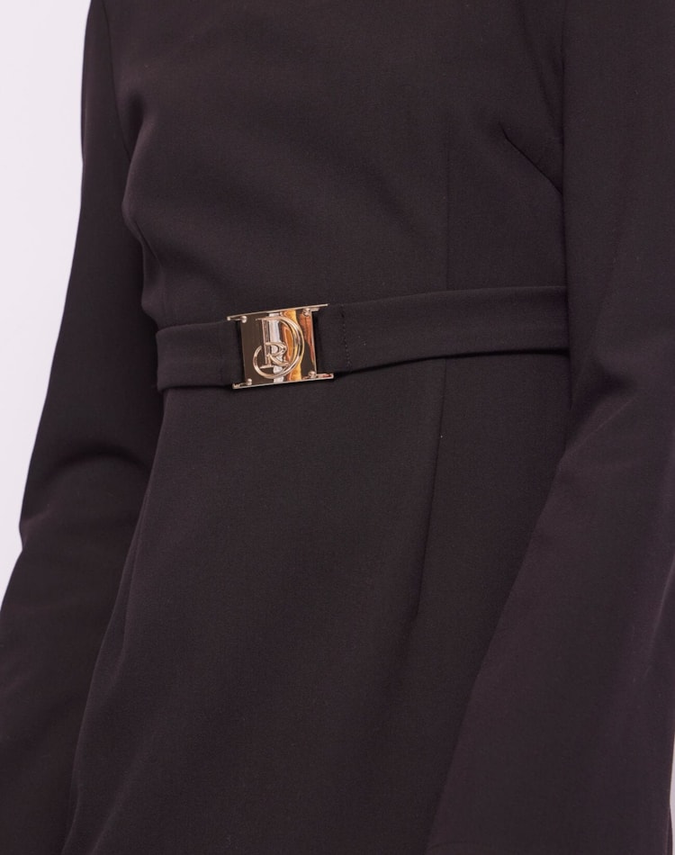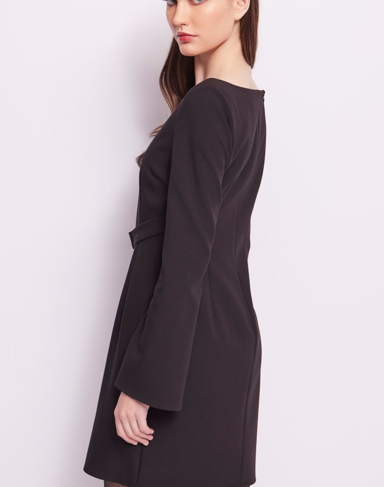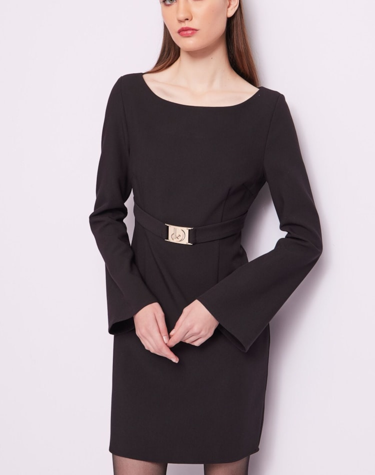 Minivestido em mistura de viscosa metalomecânico Escote barco Manga larga Cinturón com hebilla com logotipo Forro interior