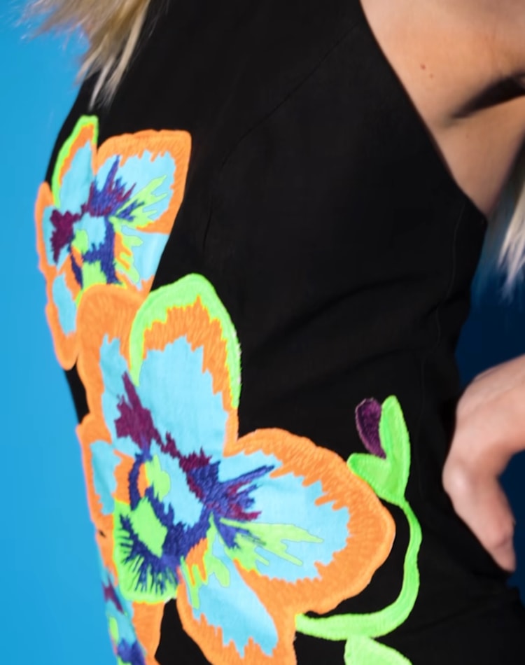 VESTIDO PRETO FLORES CURTO LANÇA PERFUME
