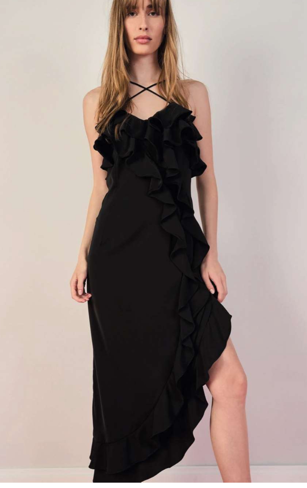 VESTIDO PRETO FOLHOS DENNY ROSE