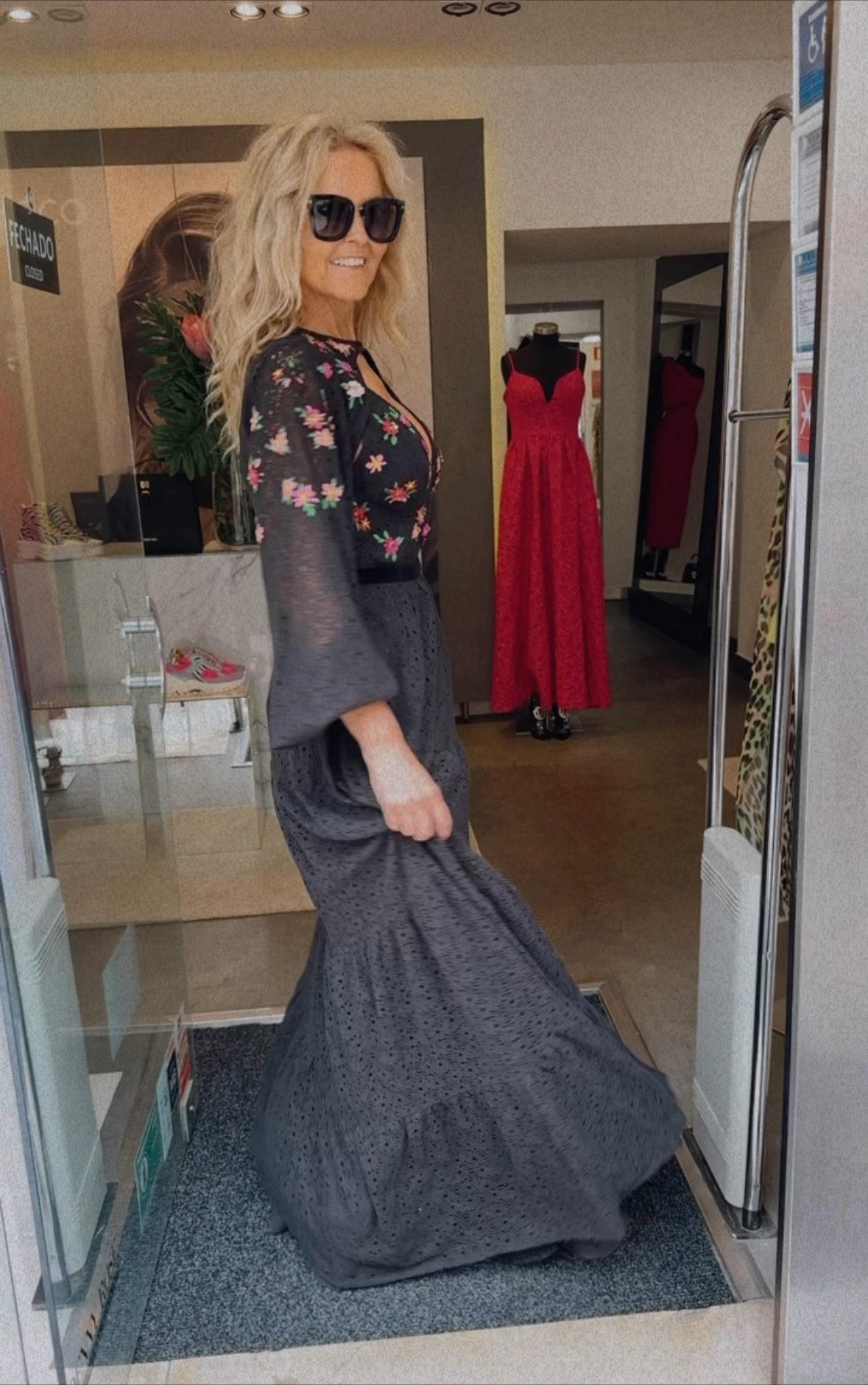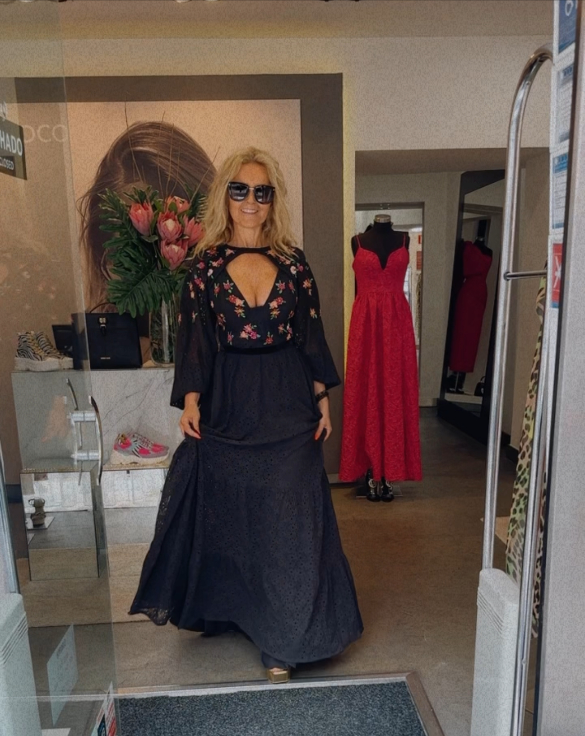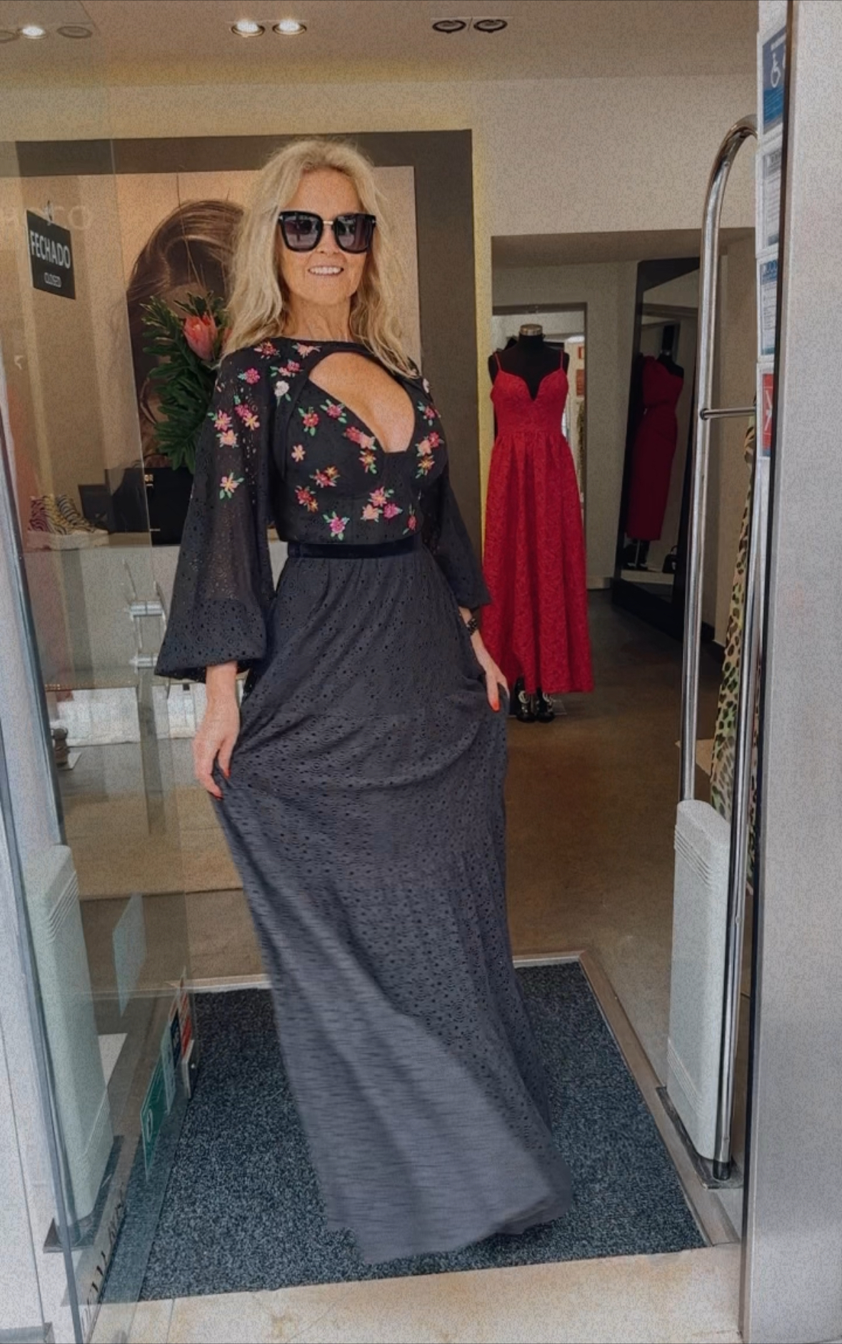 vestido longo possui mangas amplas, bojo estruturado e fechamento por zíper. Delicados bordados florais reforçam a elegância da modelagem fluida e romântica, revelando o equilíbrio perfeito entre charme e sofisticação. Para momentos especiais!