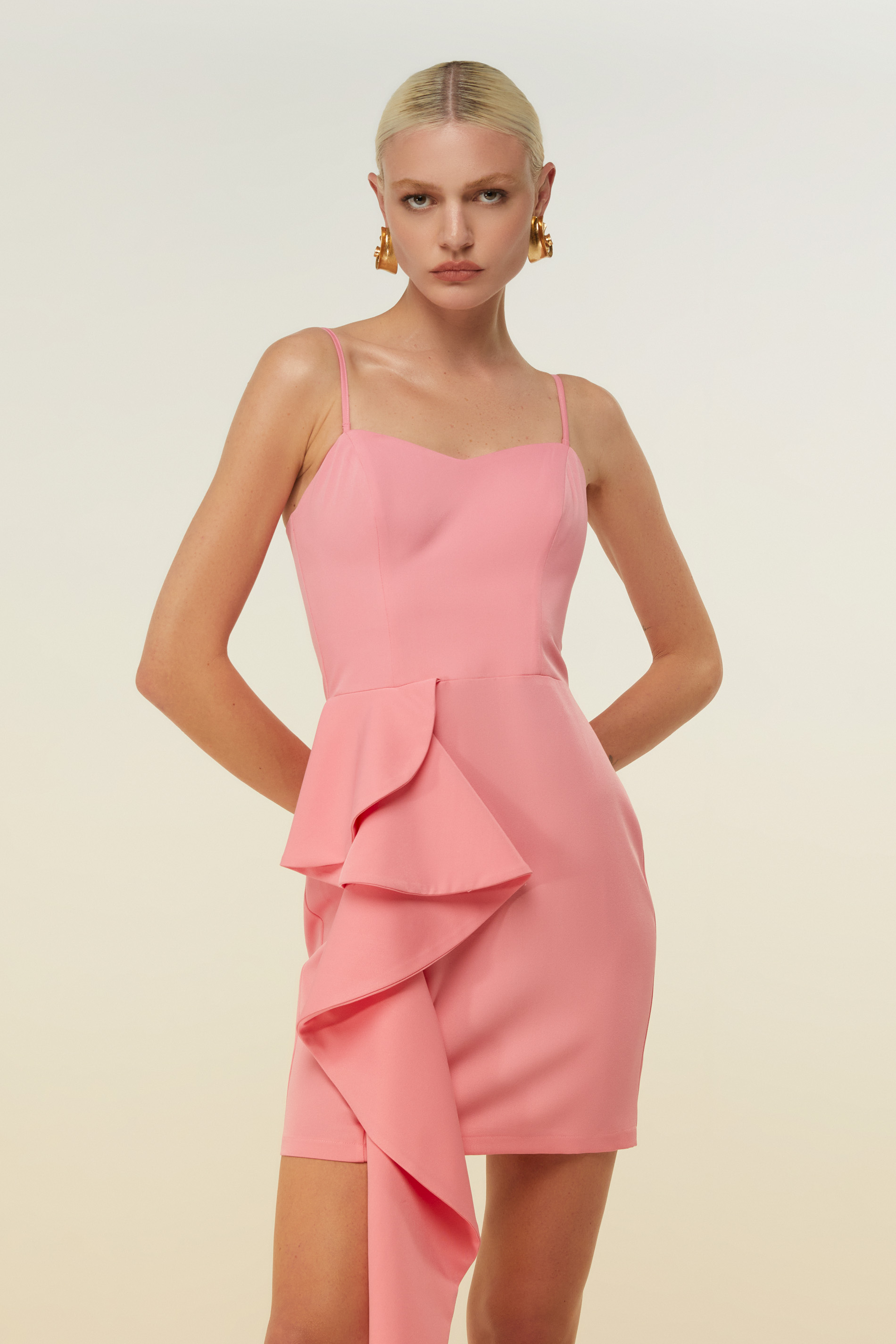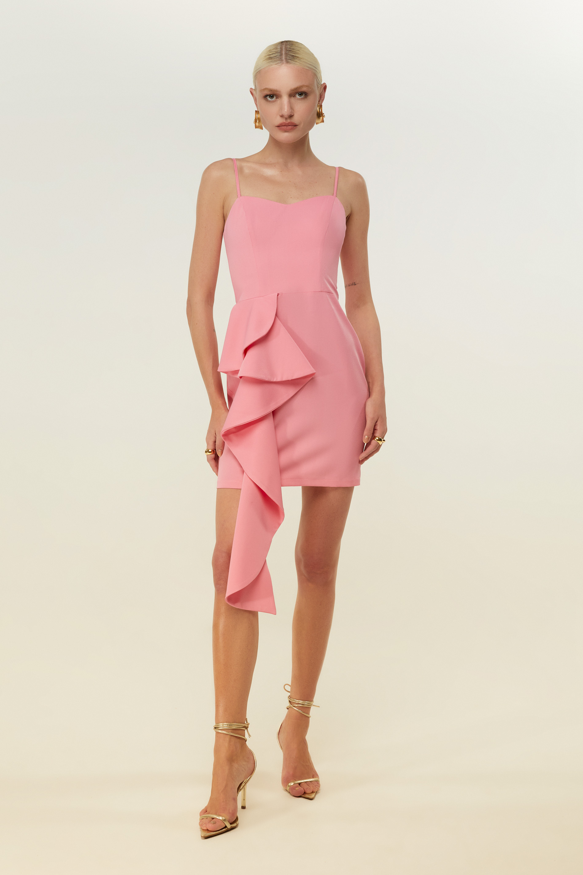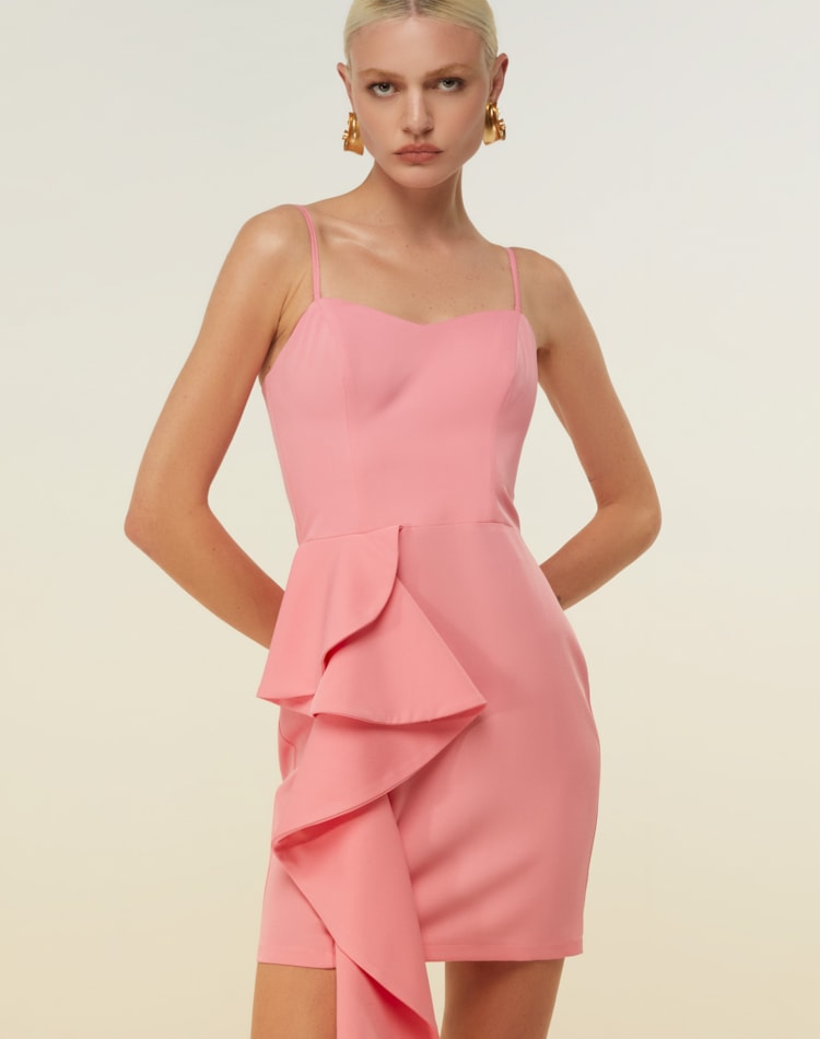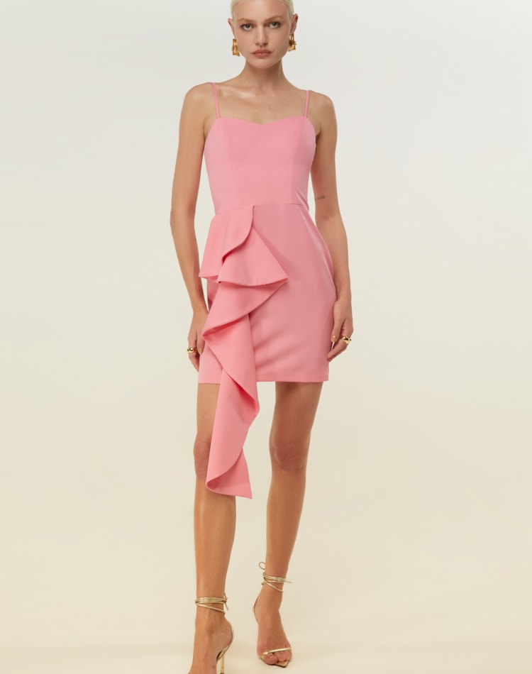 VESTIDO ROSA CURTO FOLHO DIMY