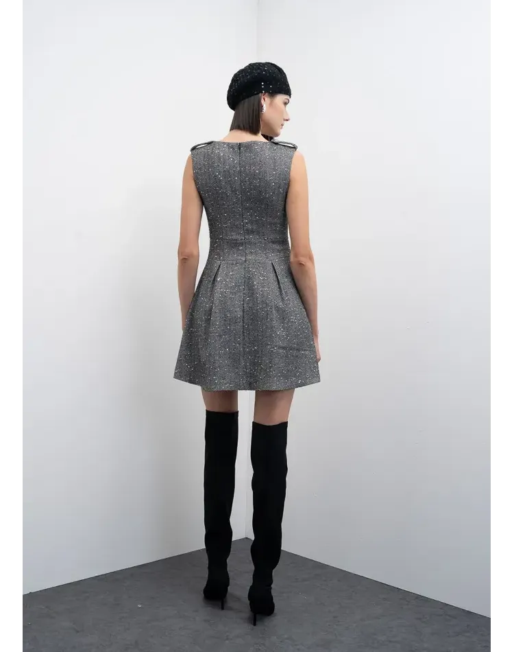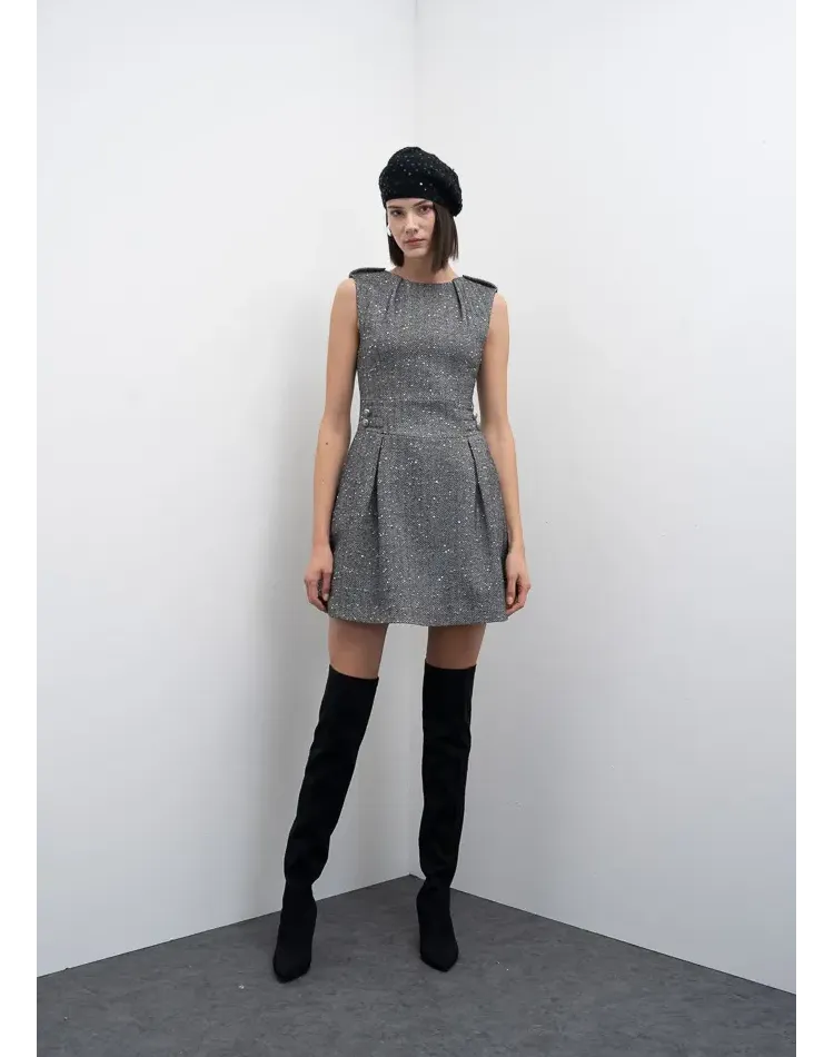 VESTIDO TWEED DE LÃ COM LANTEJOULAS GOA GOA