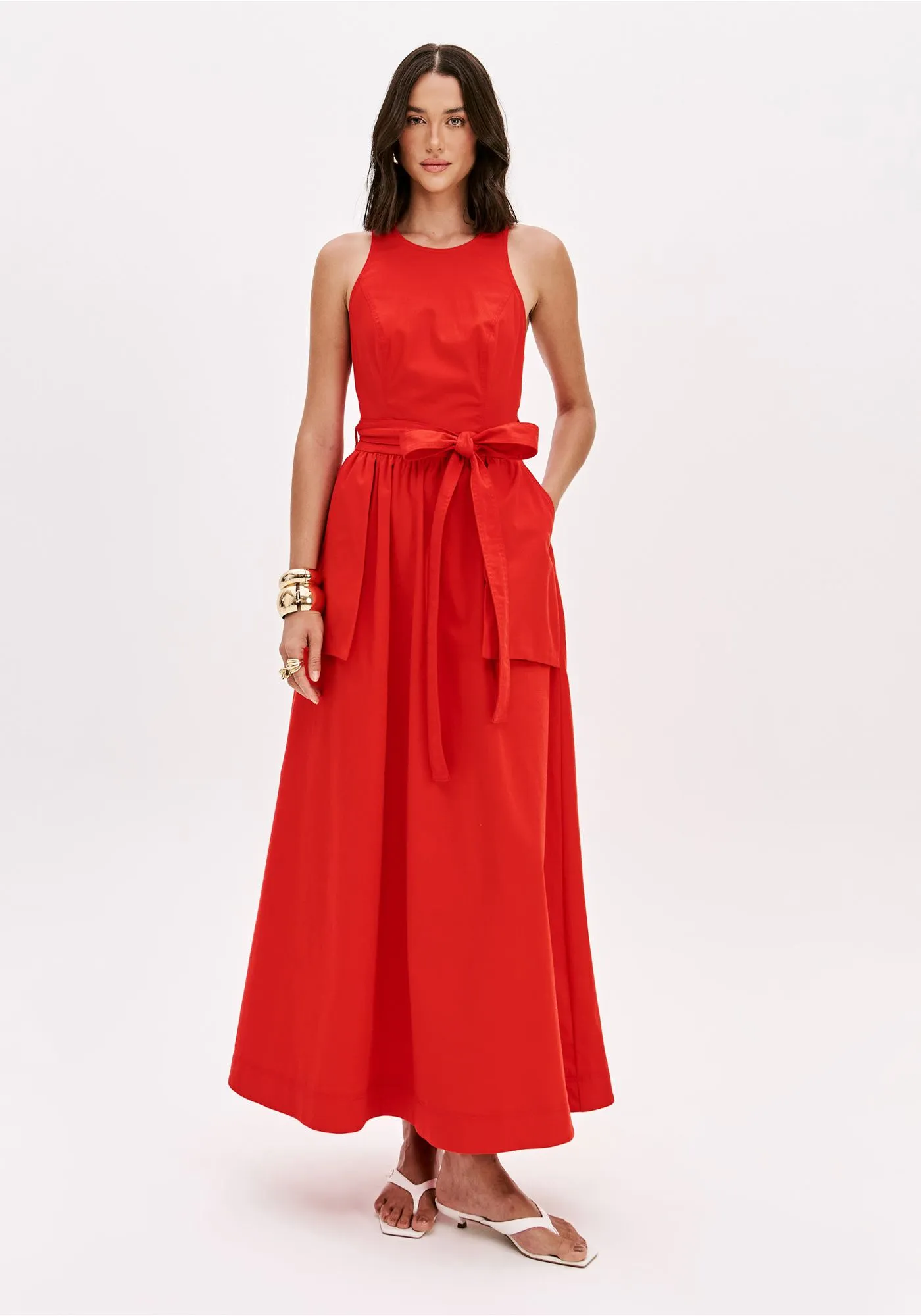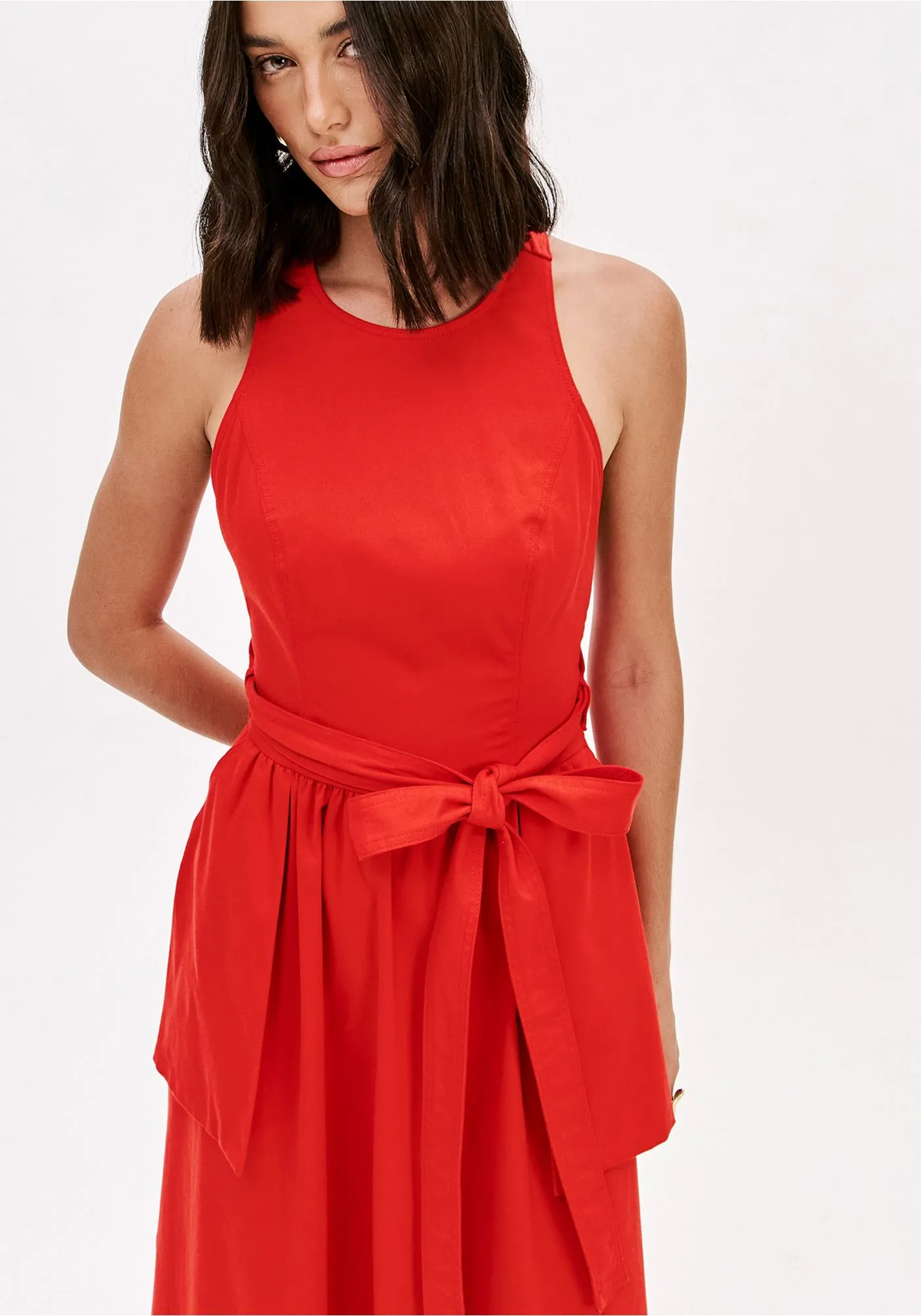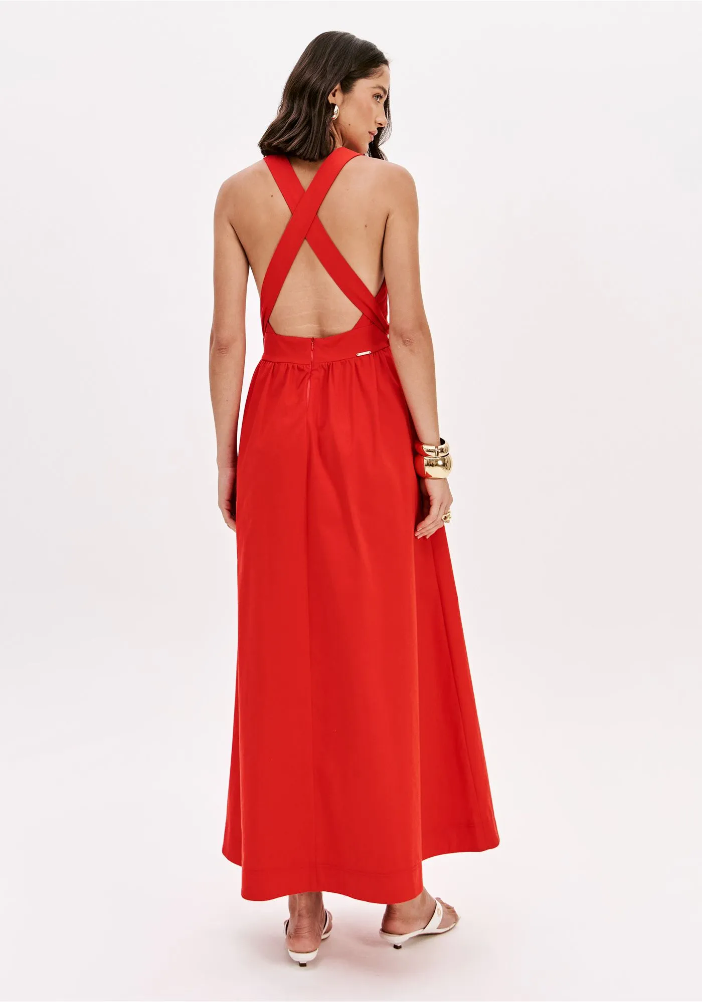 Em tecido encorpado, o vestido super midi ladylike traz parte inferior solta com bolsos laterais e leve volume. O busto justo com decote redondo e zíper posterior conta com alças largas que cruzam nas costas e formam a amarração frontal. Invista!