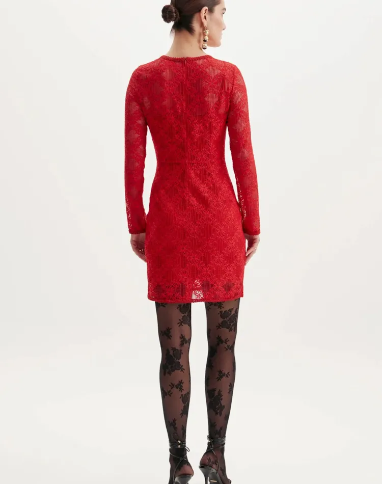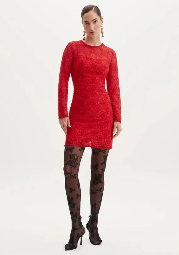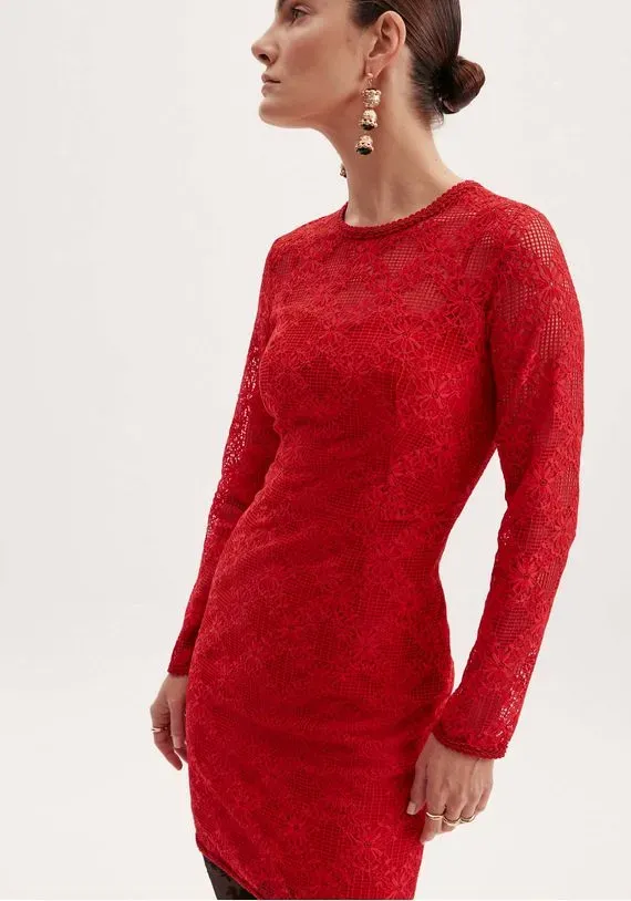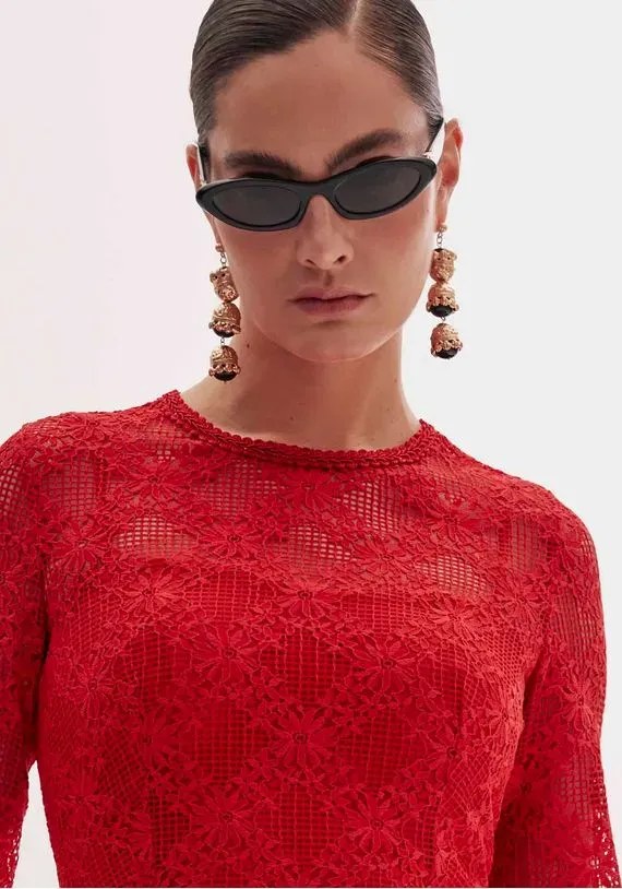 vestido rendado apresenta mangas longas, modelagem midi e shape justo ao corpo. Elegante e atemporal, é uma ótima aposta para eventos especiais. Aposte!